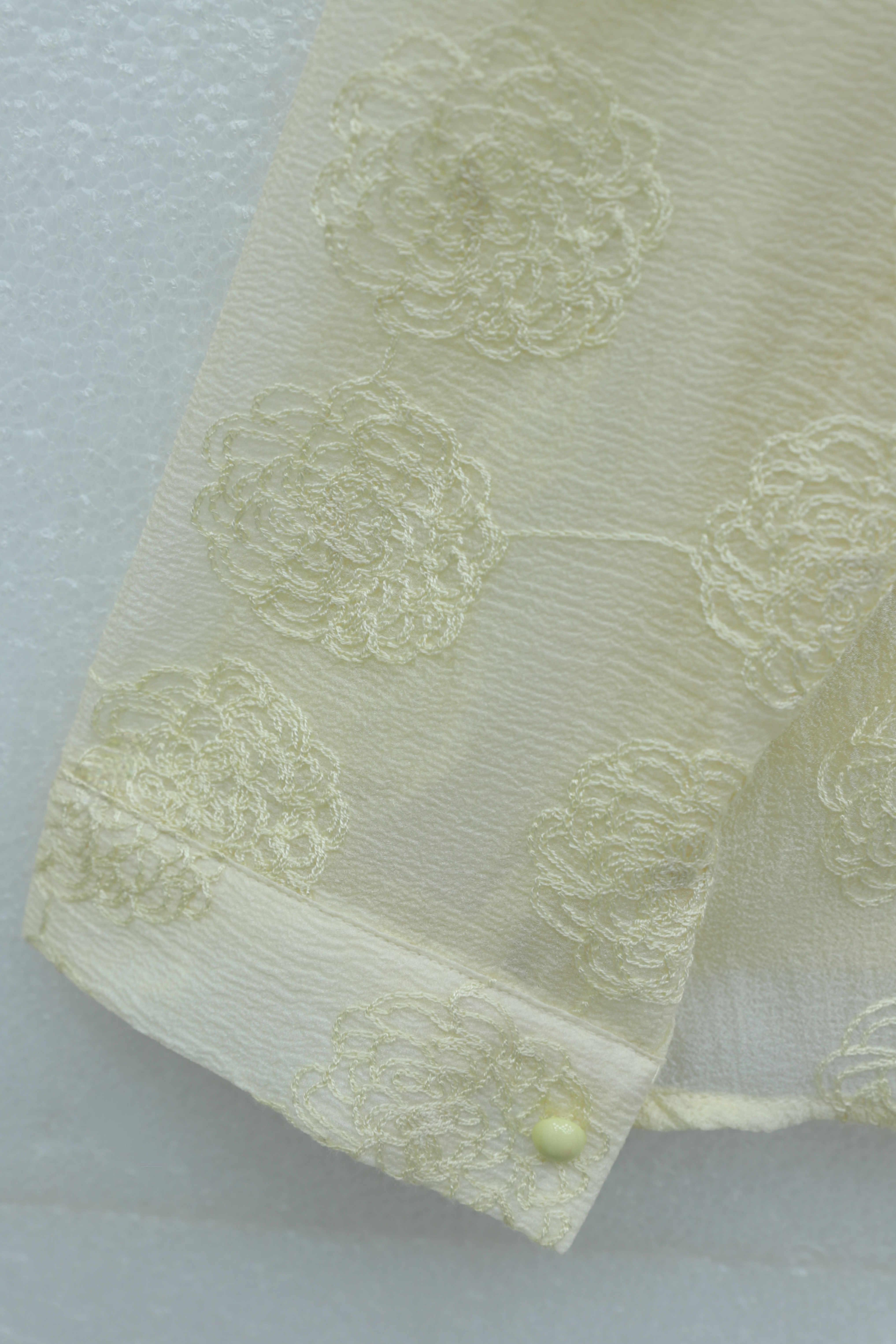 قميص جاكار منقوش مزين بالدانتيل، بأزرار أمامية -أبيض سكري