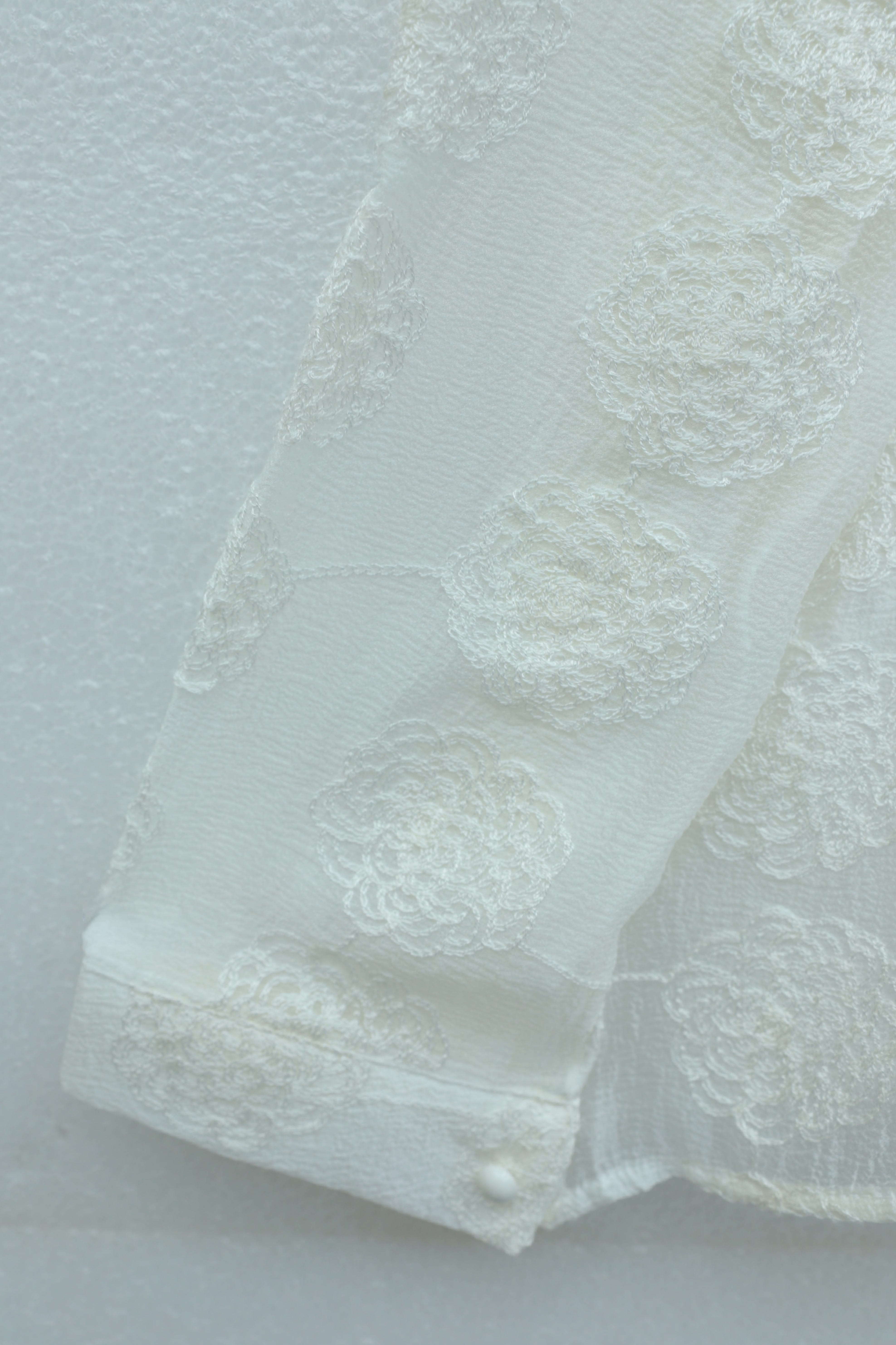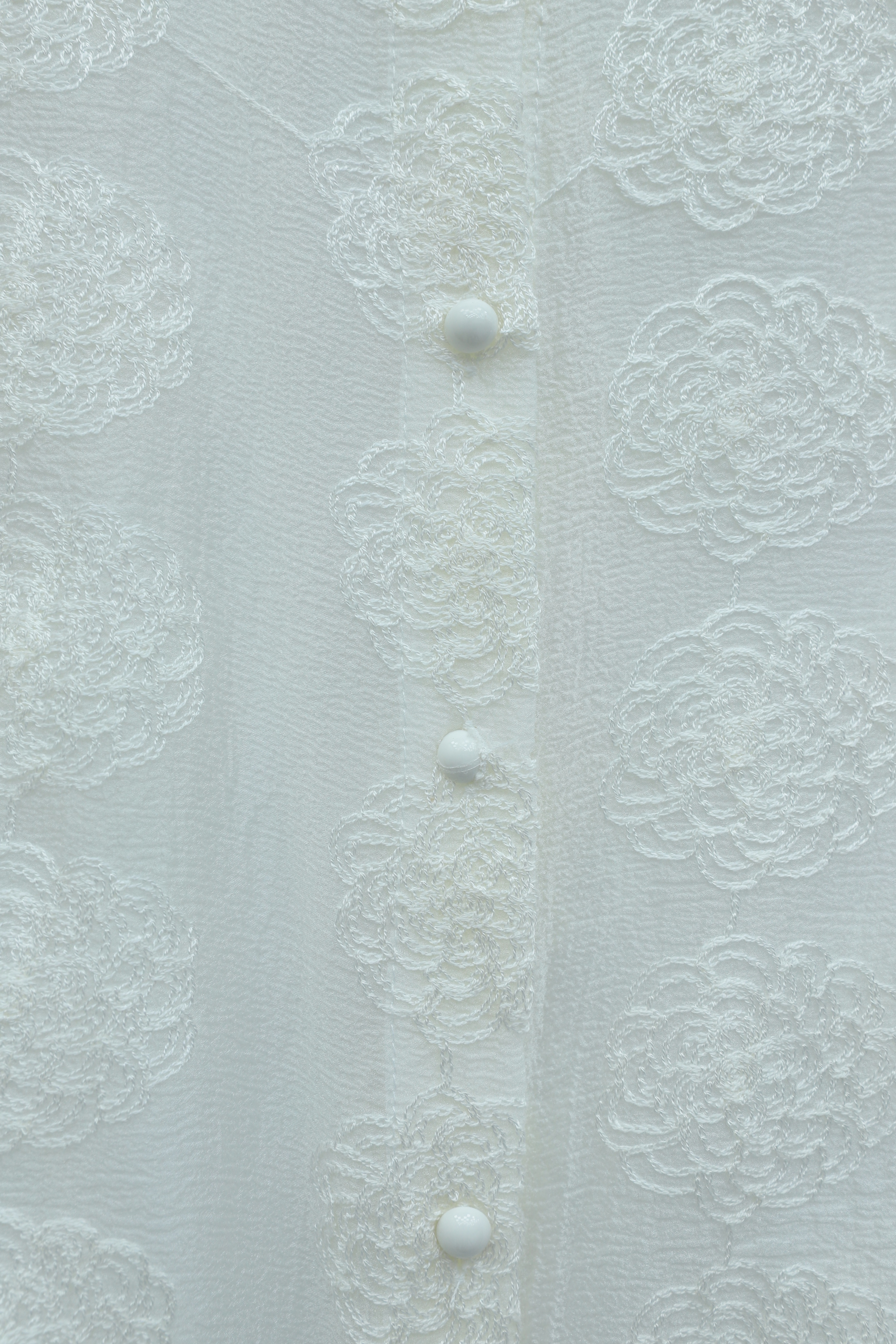 قميص جاكار منقوش مزين بالدانتيل، بأزرار أمامية -أبيض سكري