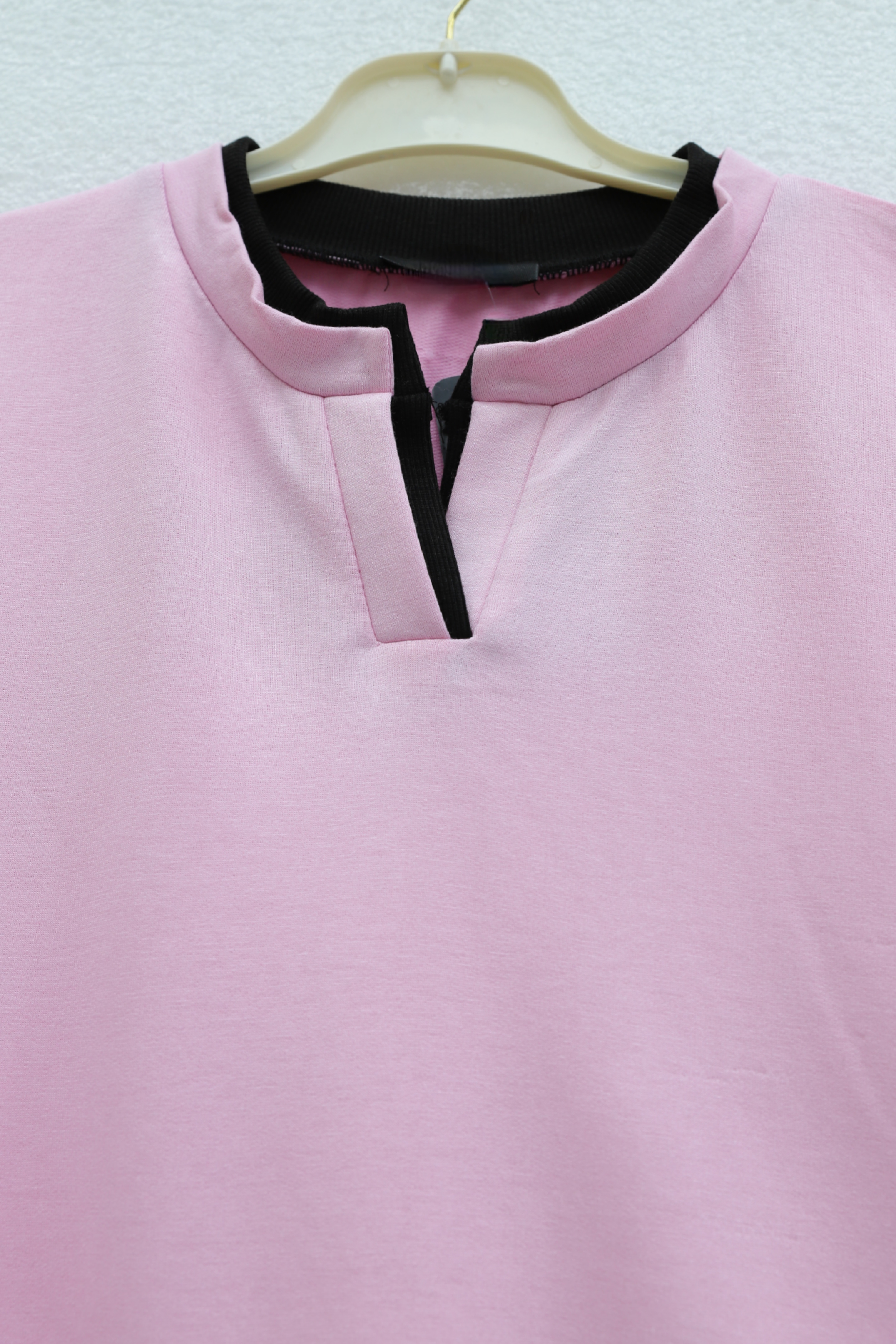 بلوزة قطنية مزدوجة الطبقات بياقة على شكل حرف V وخيطين -وردي