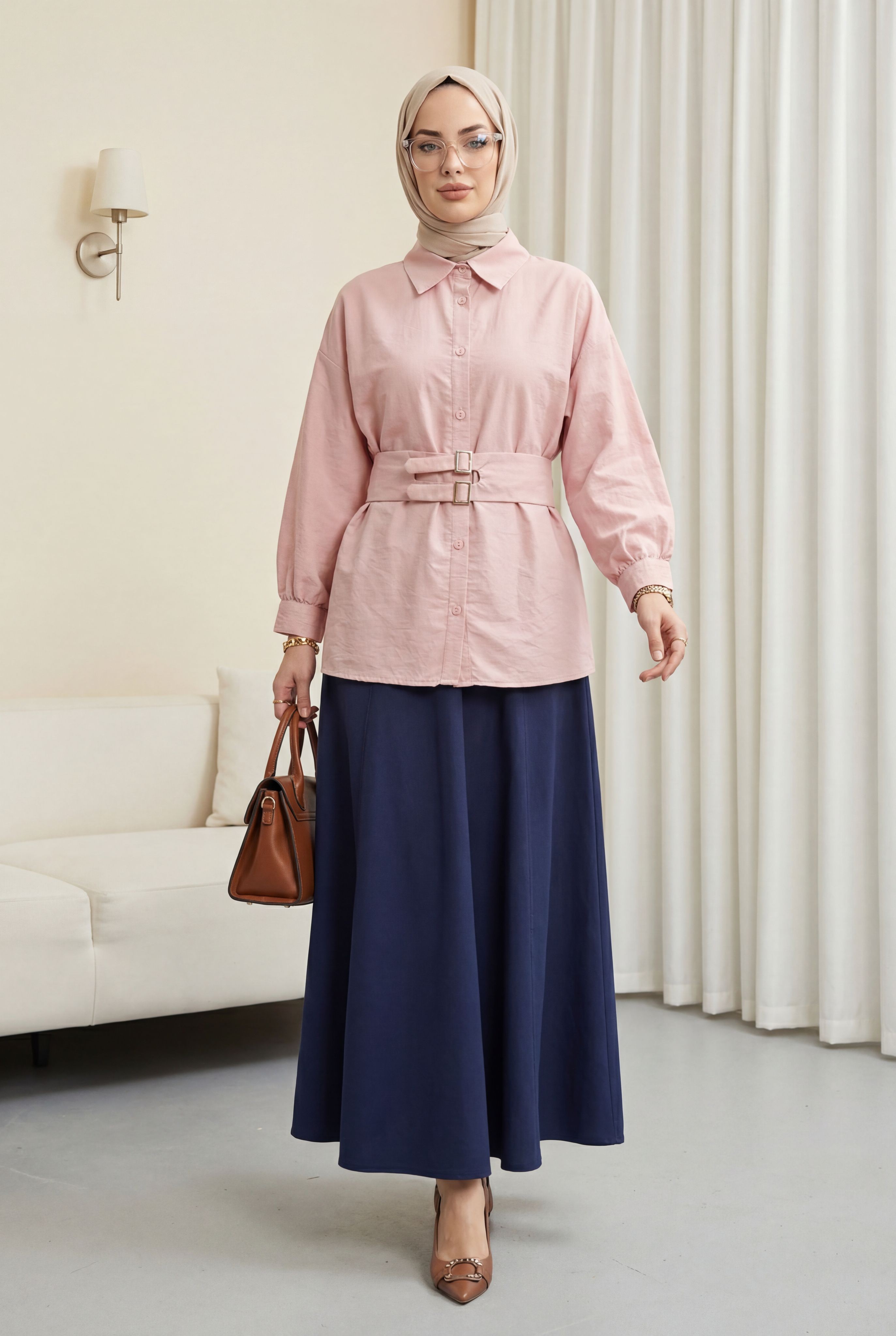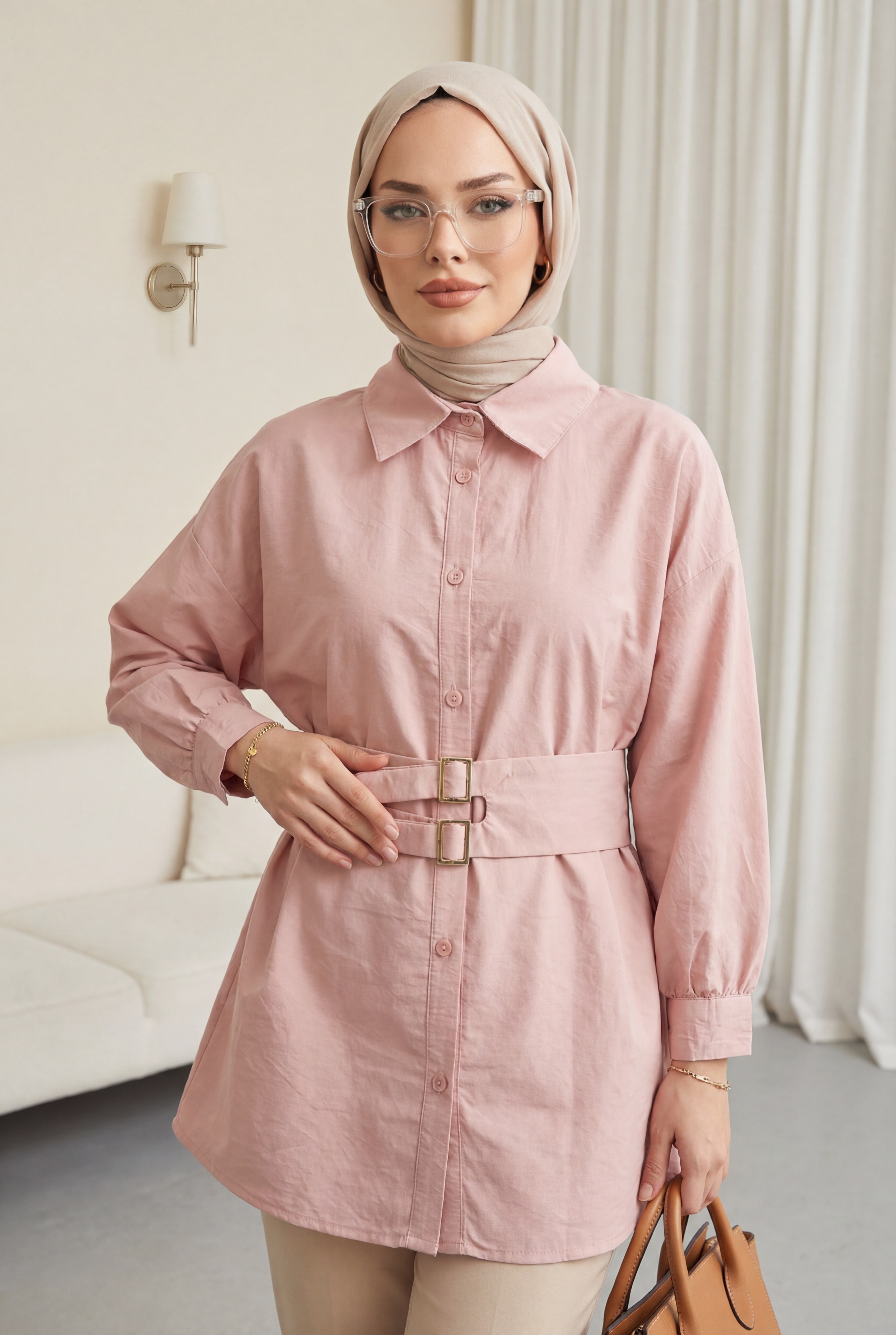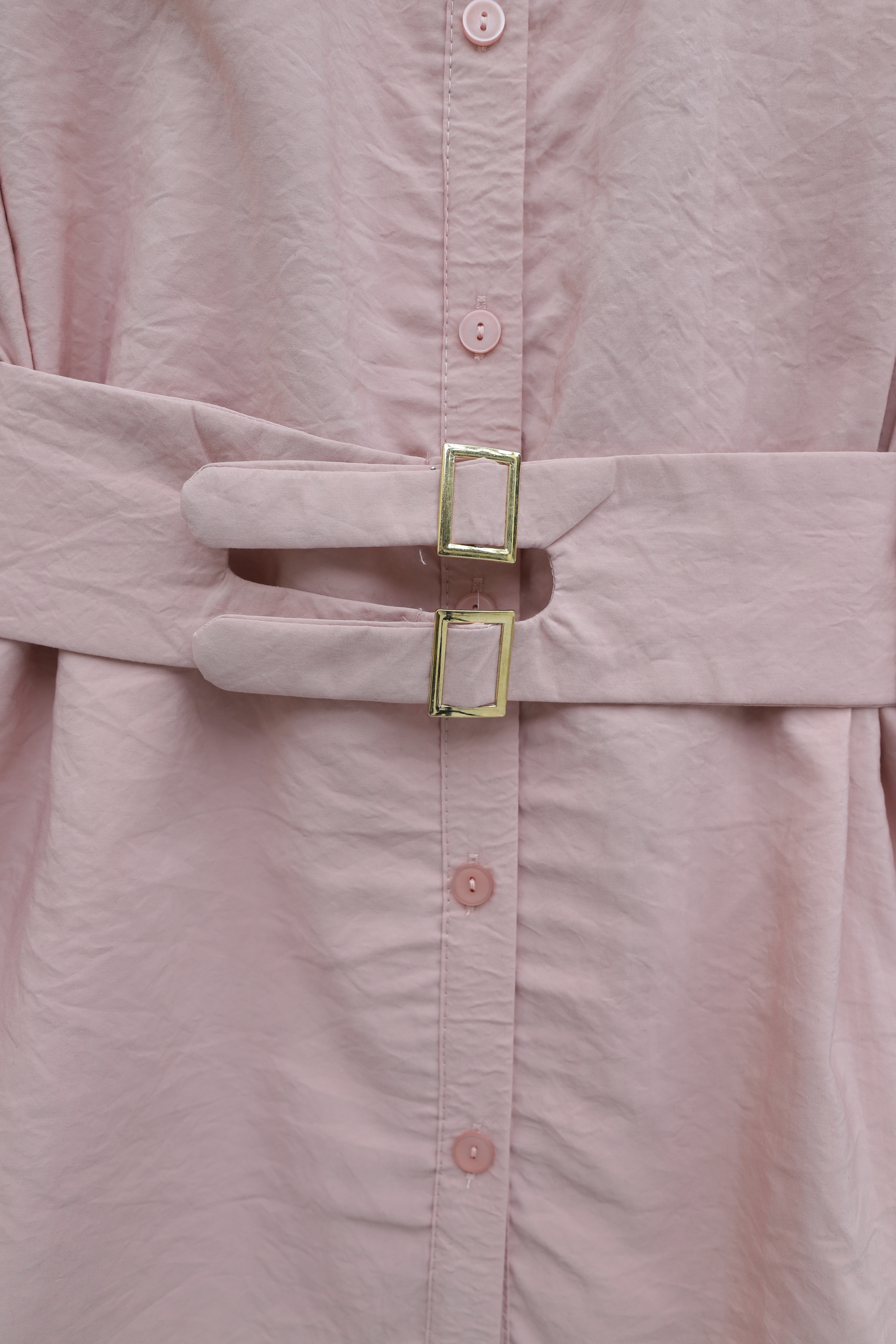 قميص كوبرا بحزام مطاطي مزدوج الإبزيم وأزرار أمامية -بودرة