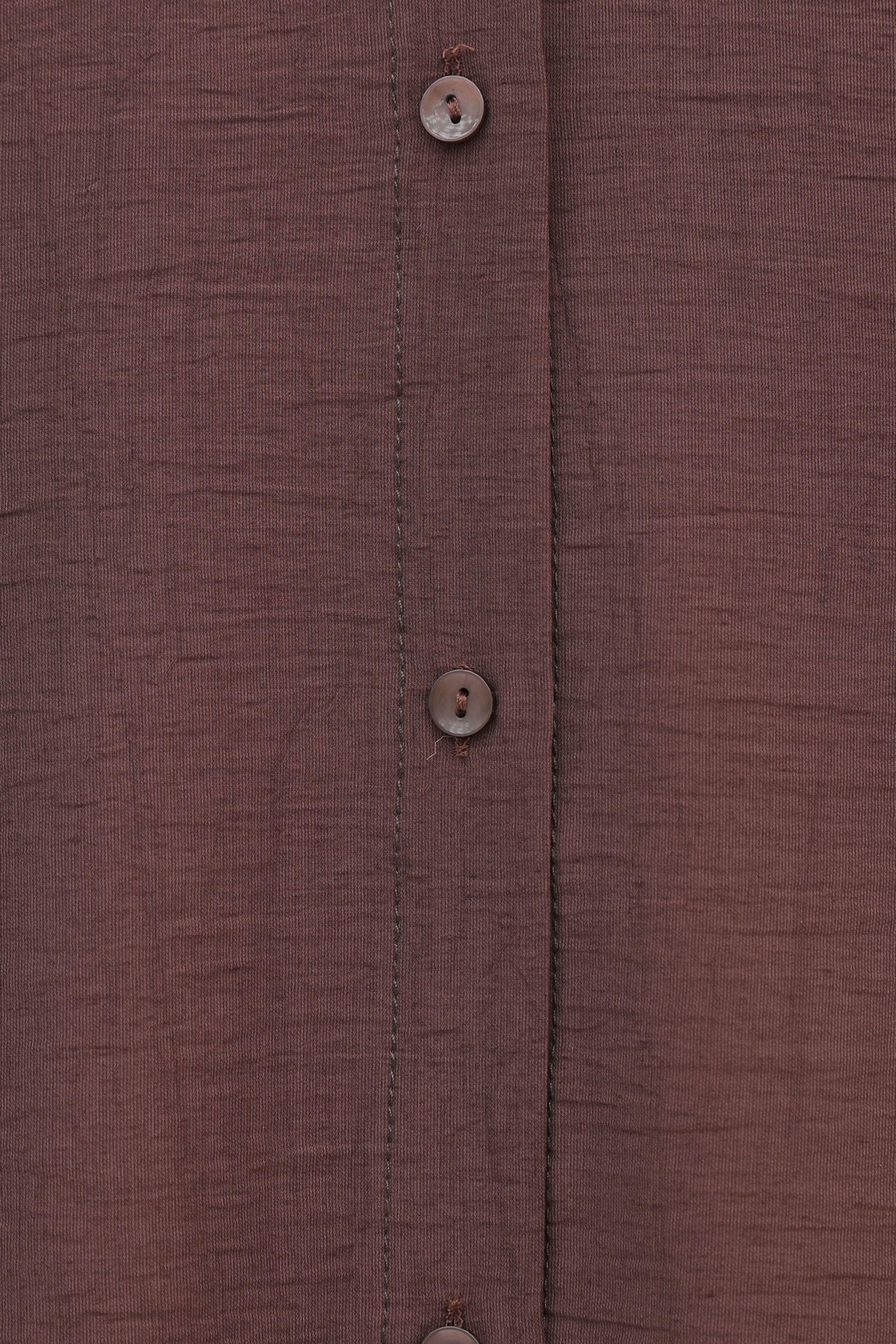 قميص بأزرار أمامية بقصة بيضاوية -بنى