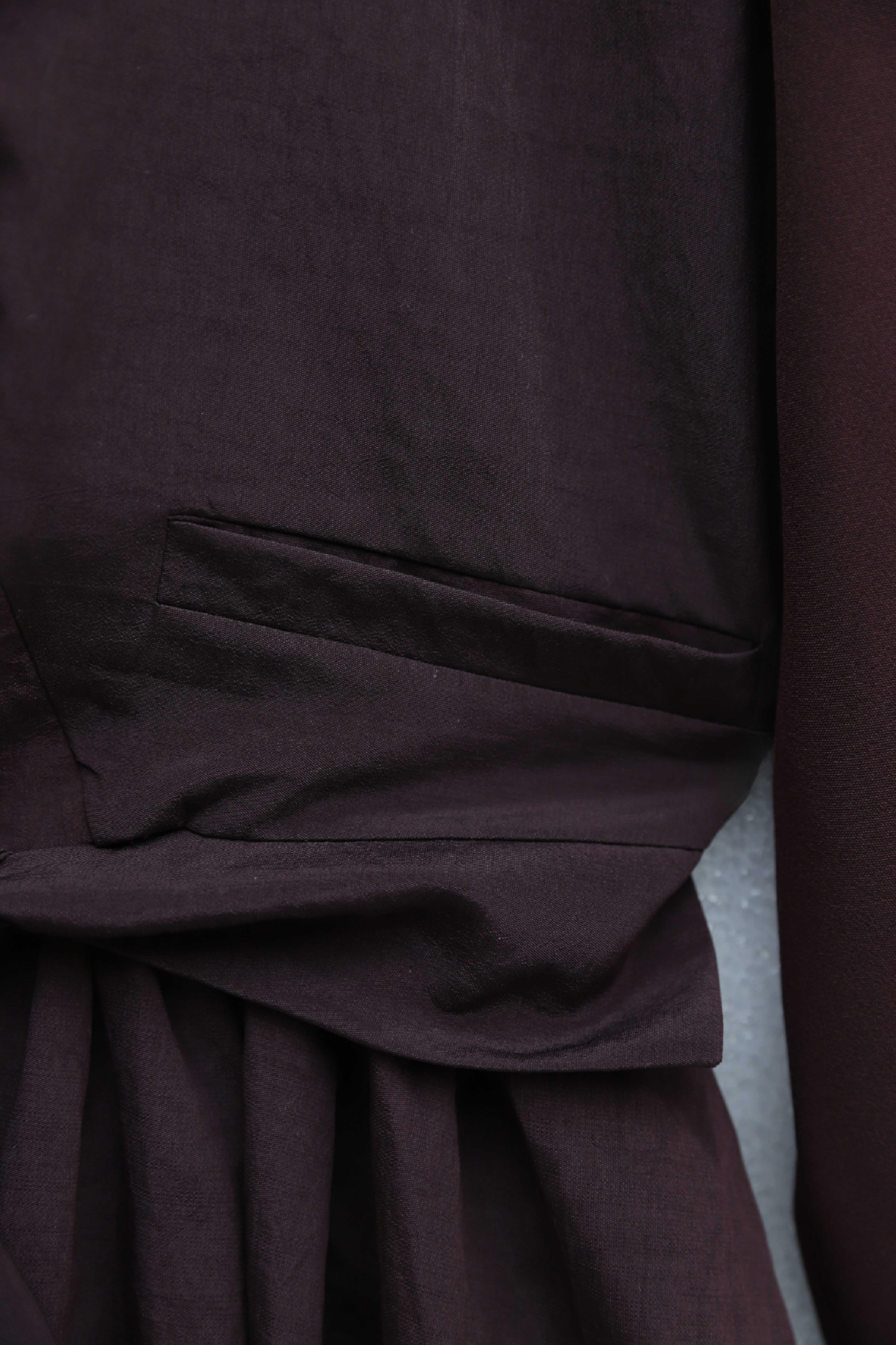 تنورة متعددة الطبقات بنقوش يوريو، برباط عند الخصر، فستان شيفون مبطن -بوردو