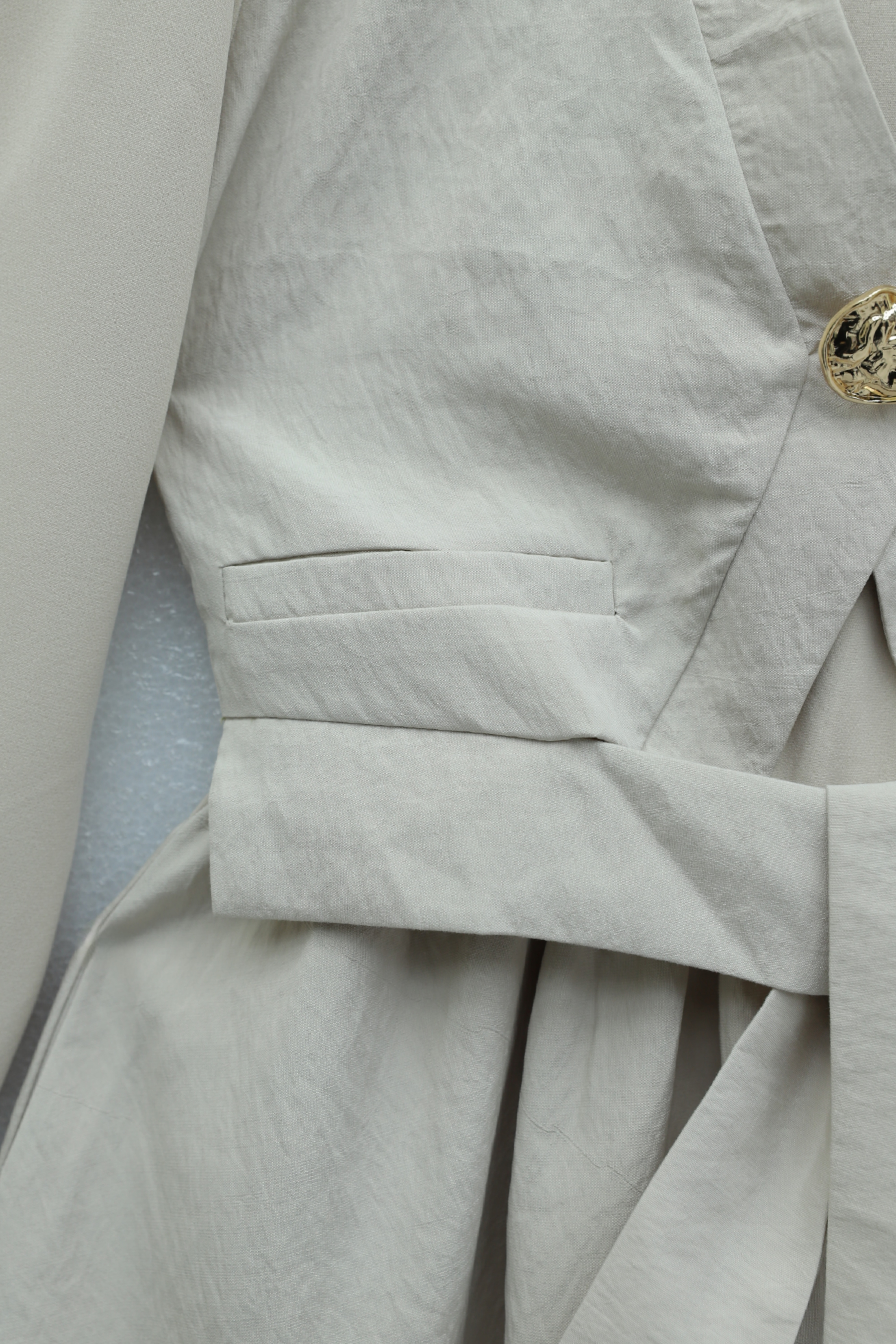 فستان من الساتان القطني بنصف أزرار، وياقة، وجيب جانبي، وحزام. -بنى