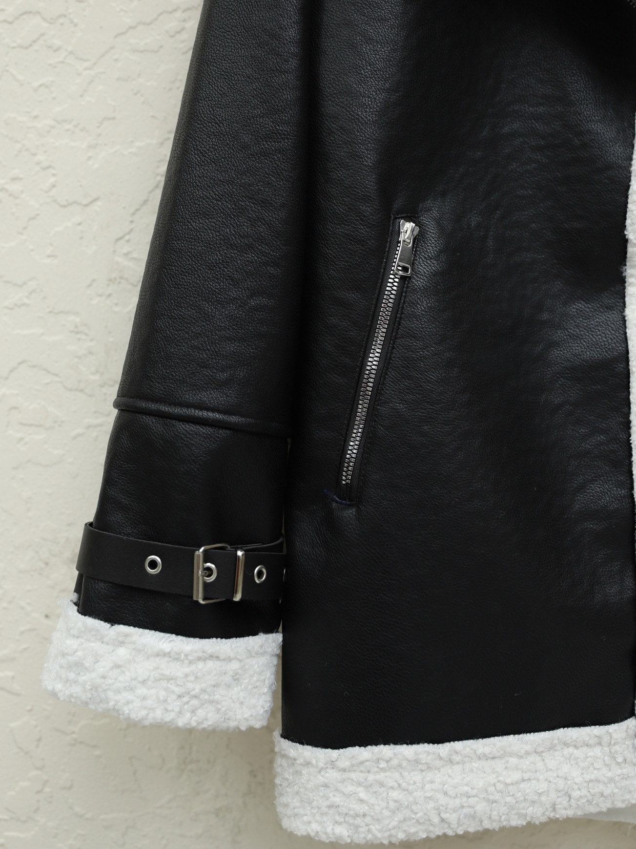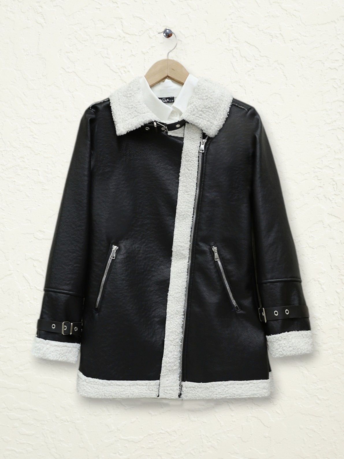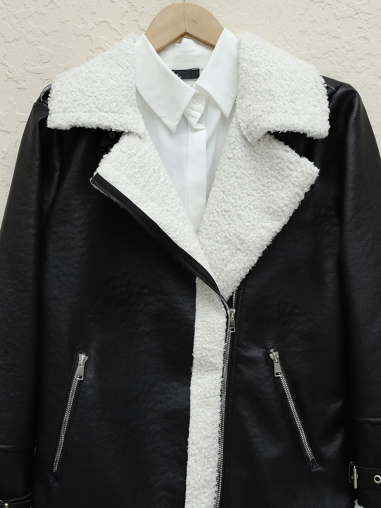 جاكيت جلدي داخلي من القطيفة بسحاب