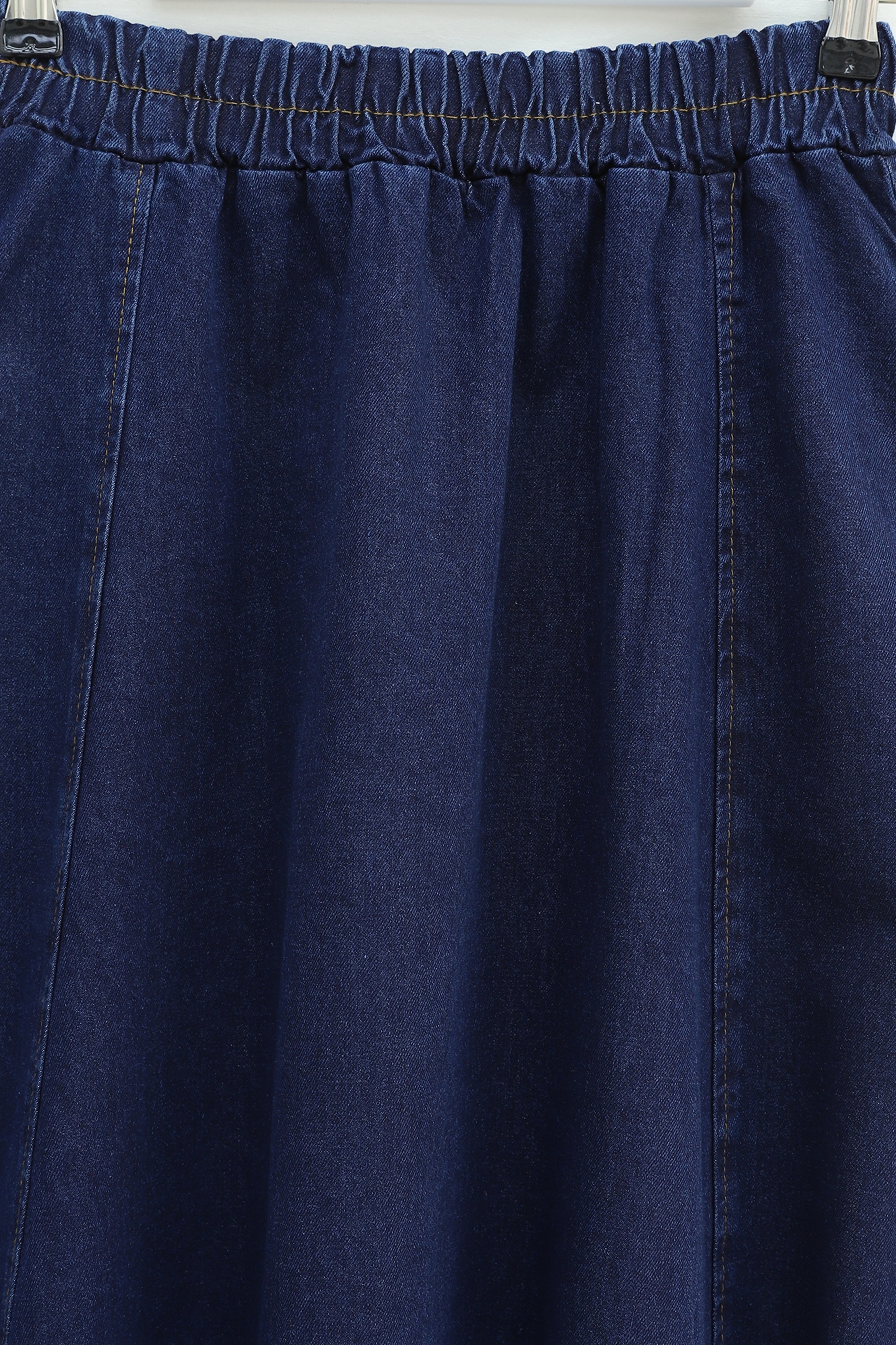 تنورة جينز بجيوب جانبية وحزام خصر مطاطي -كحلي