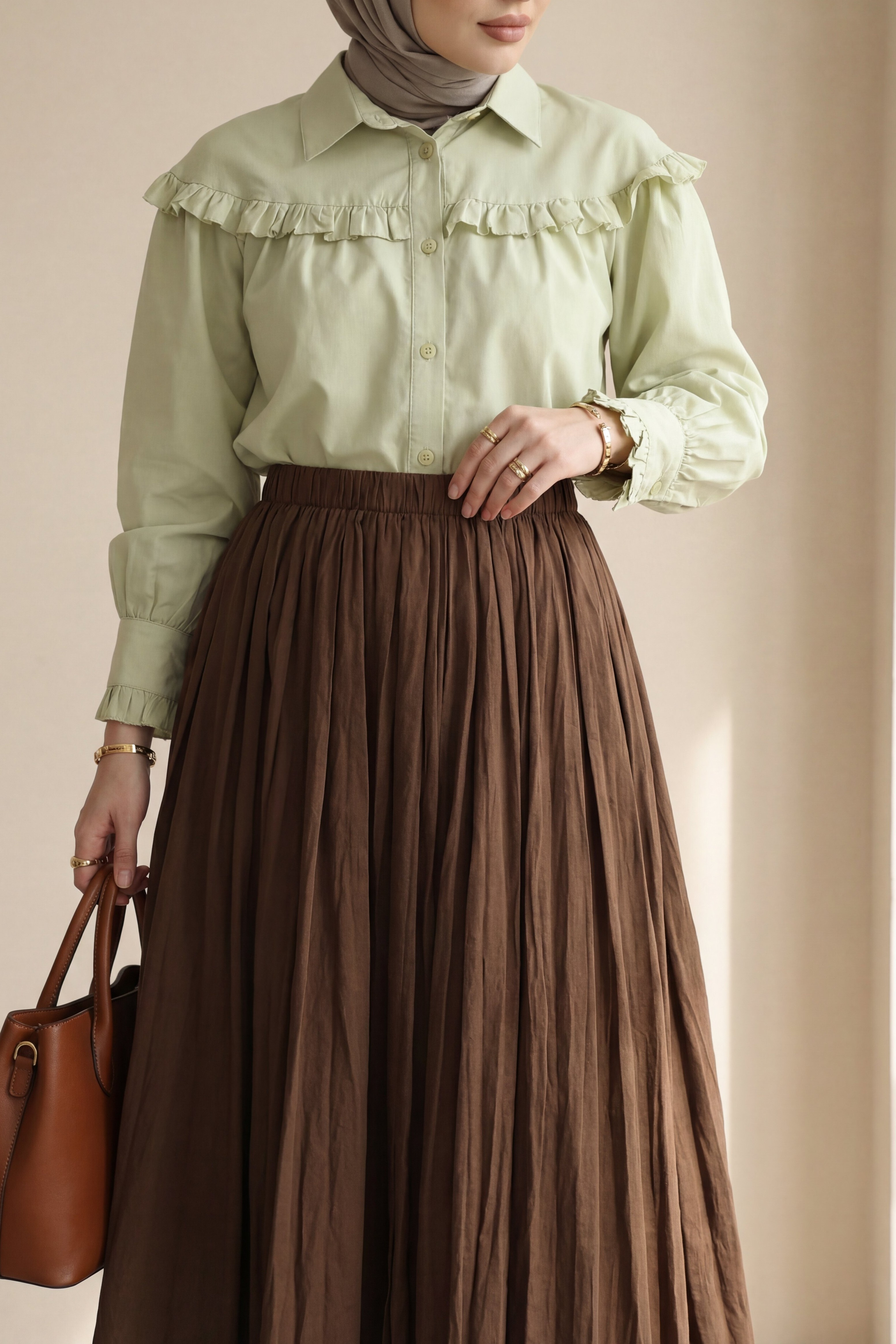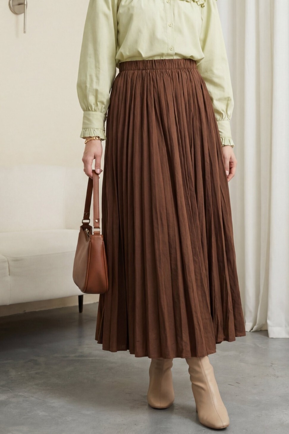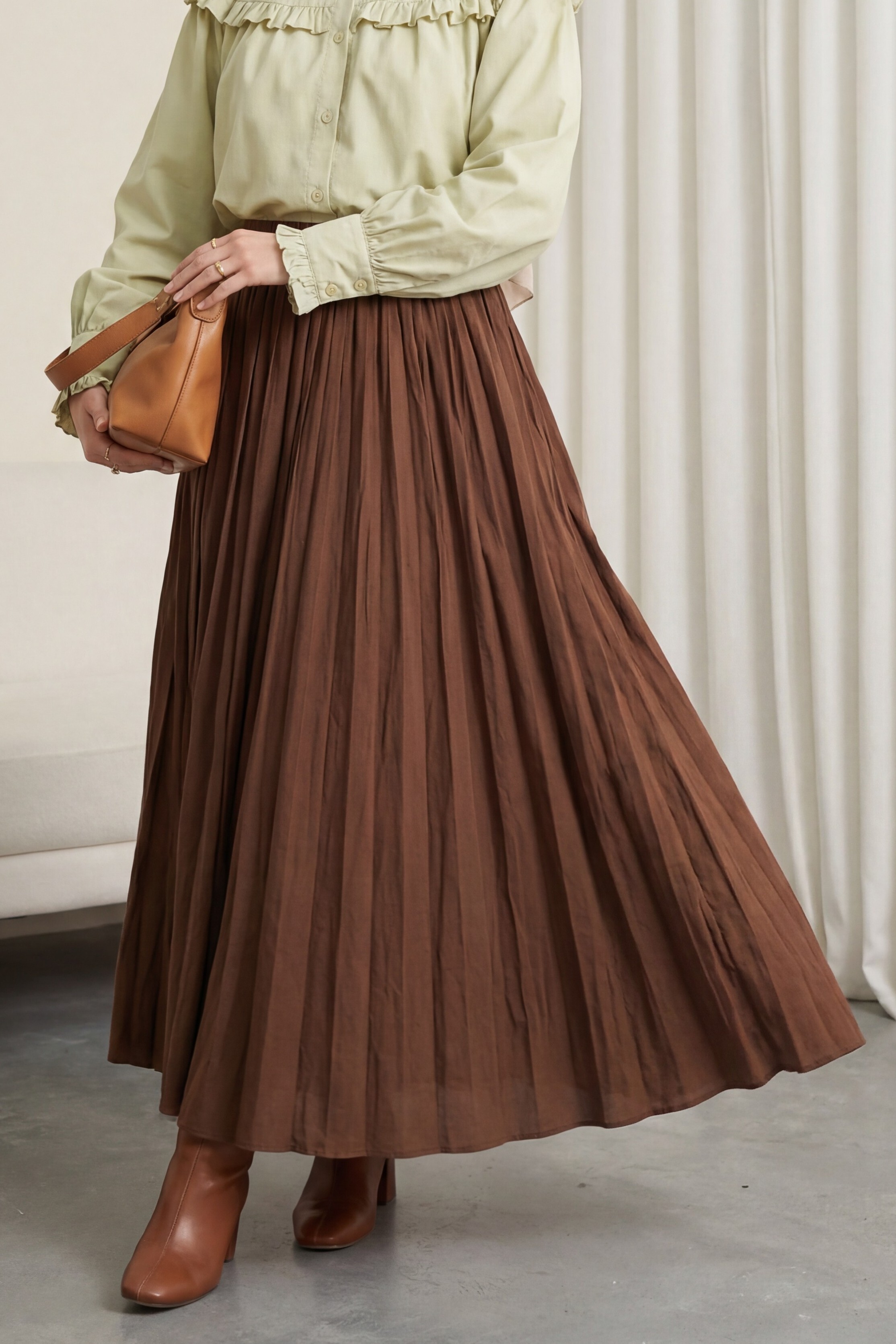 تنورة واسعة بخصر مطاطي -بنى