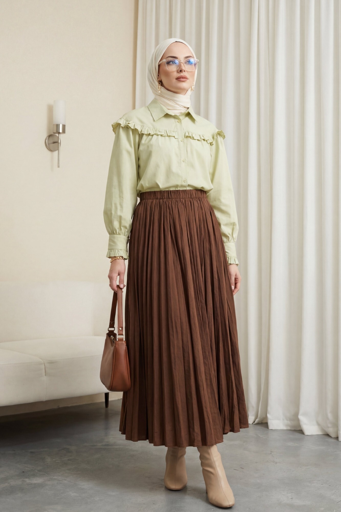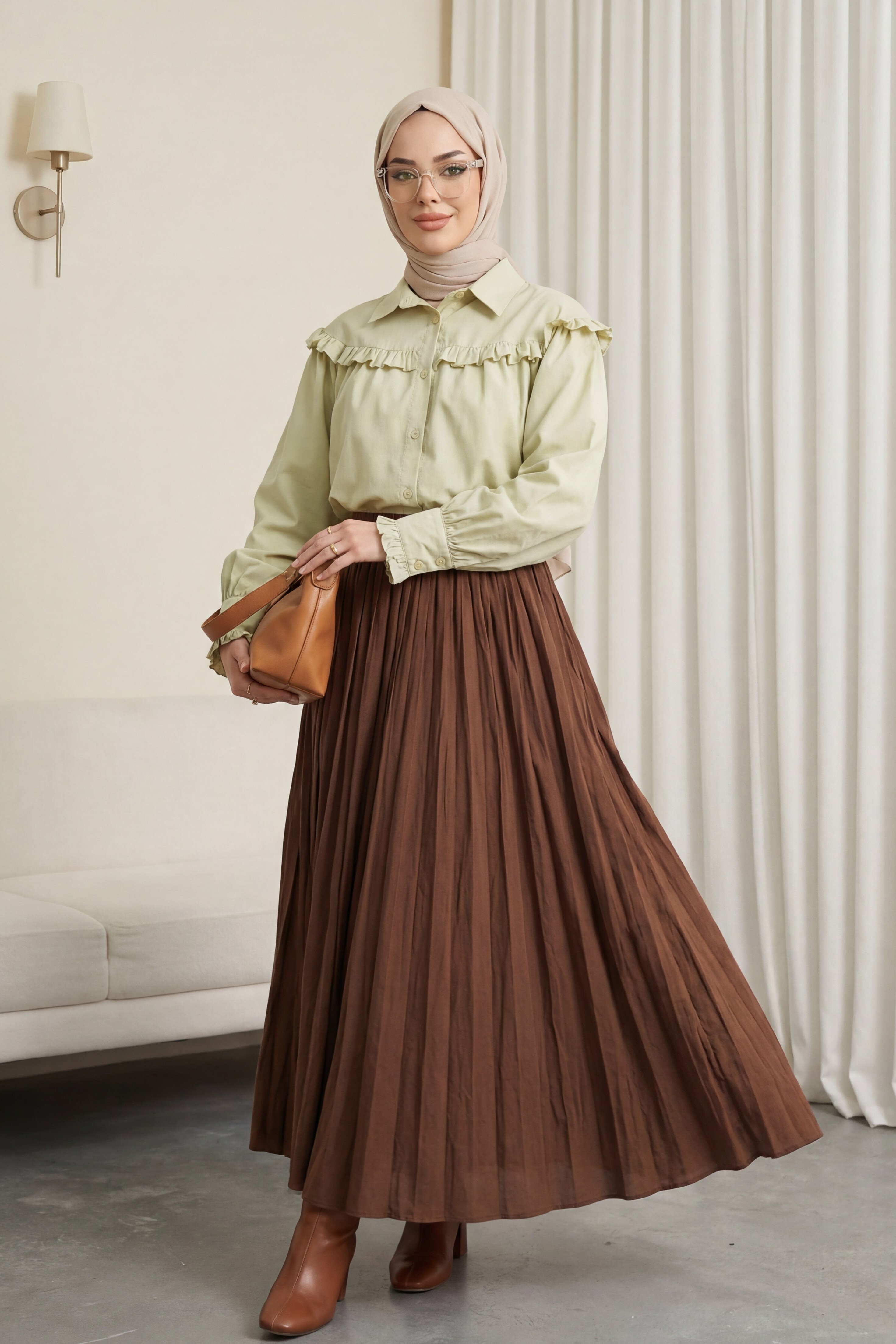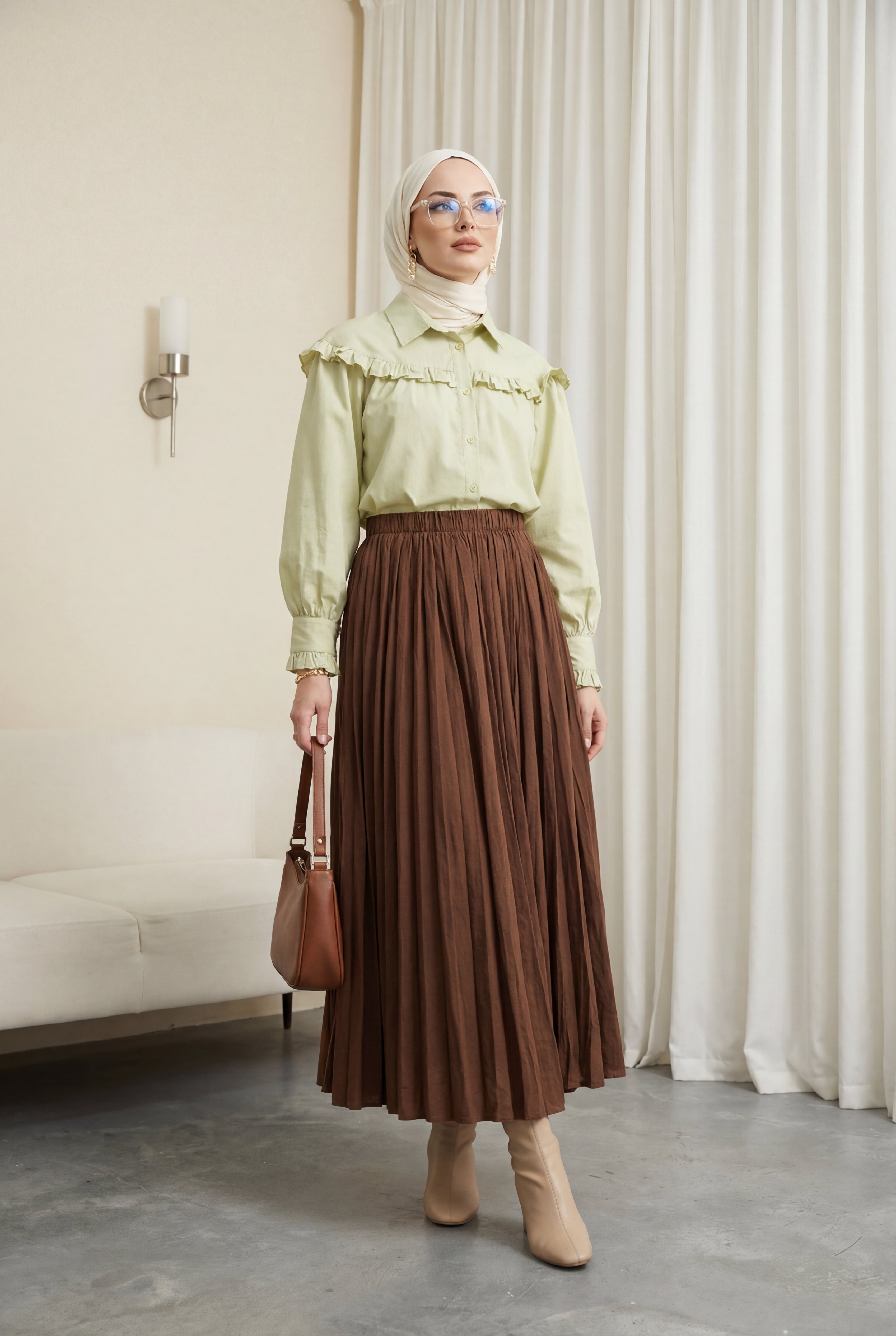 تنورة واسعة بخصر مطاطي -بنى