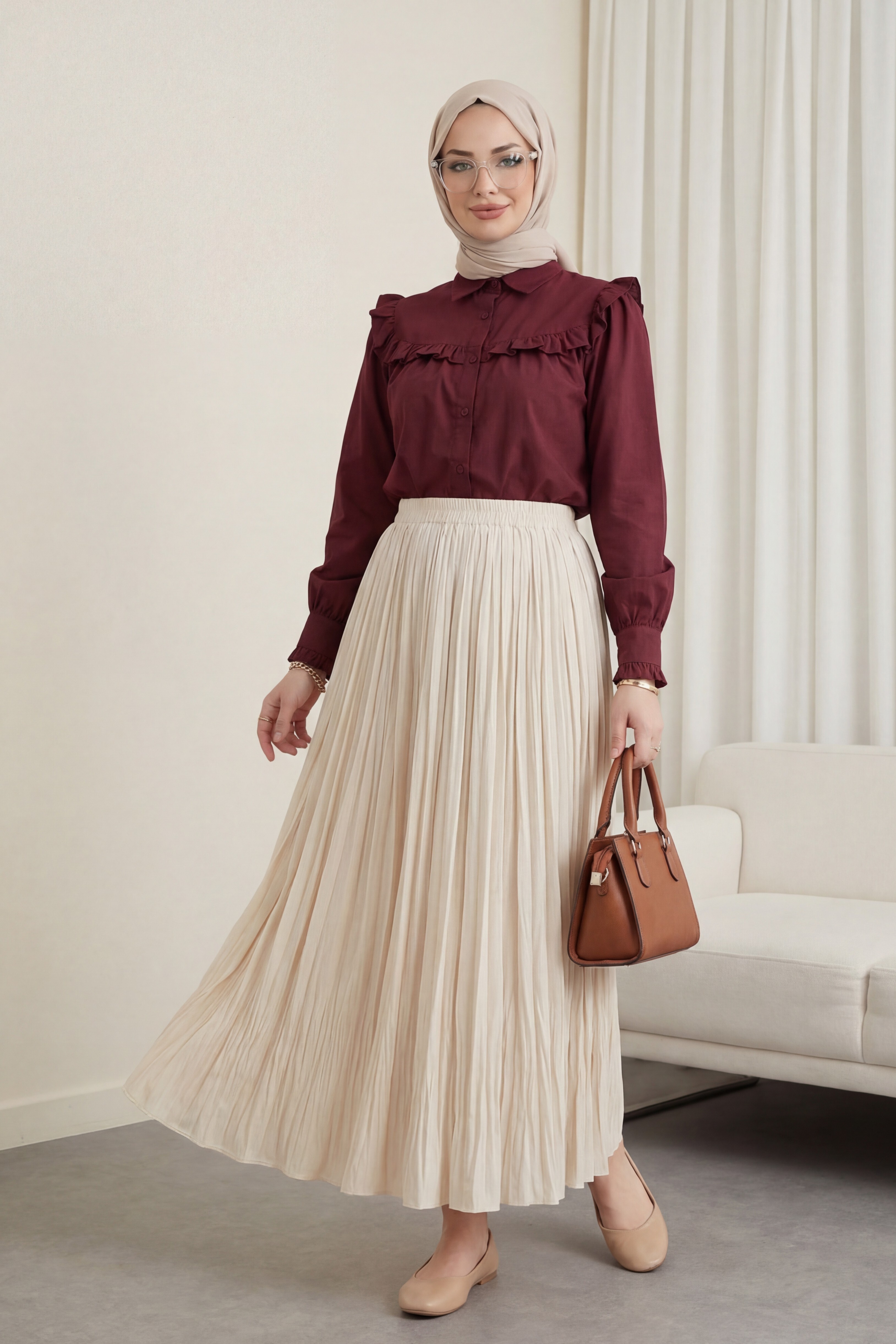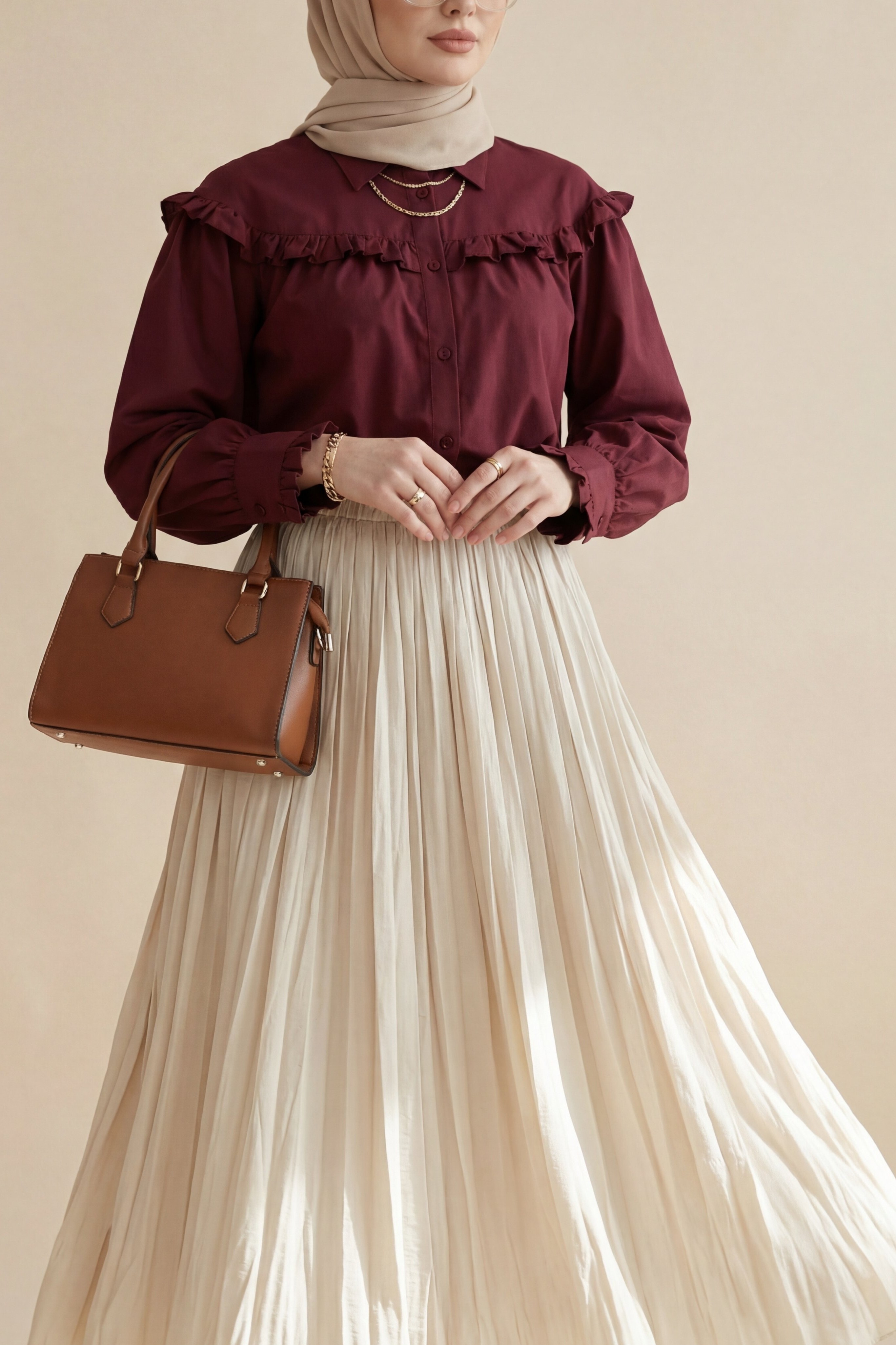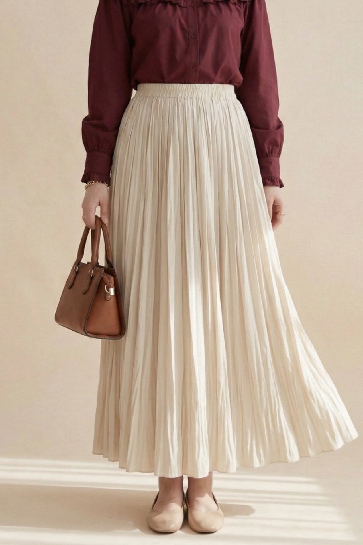 تنورة واسعة بخصر مطاطي -اللون البيج