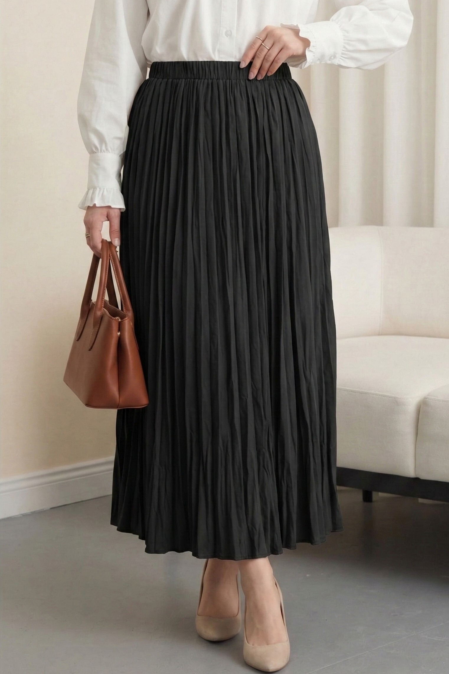 تنورة واسعة بخصر مطاطي -أسود