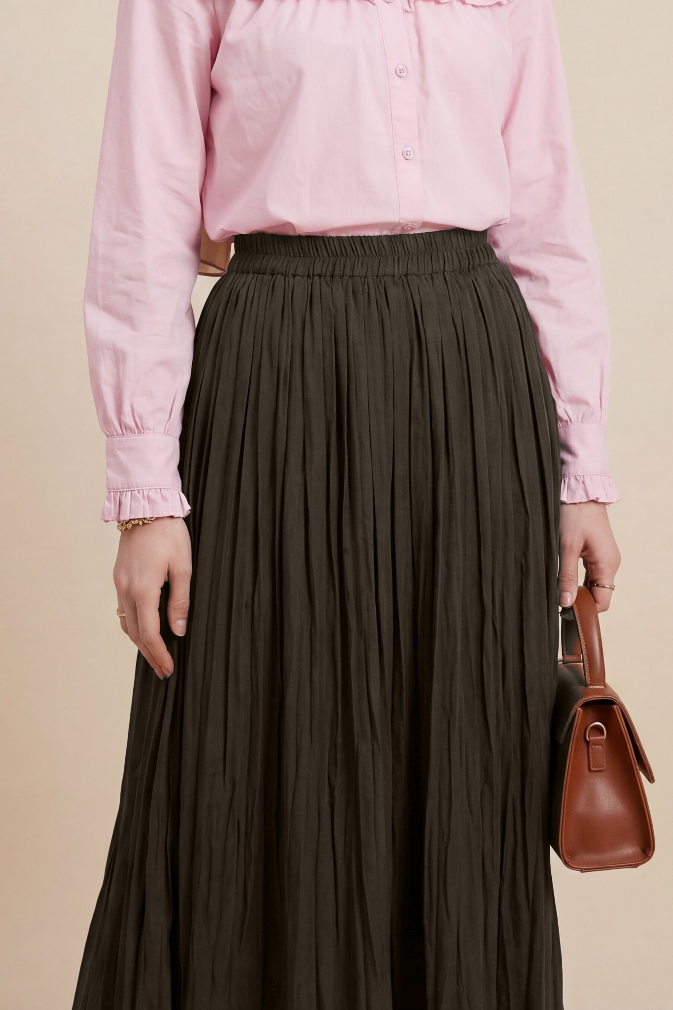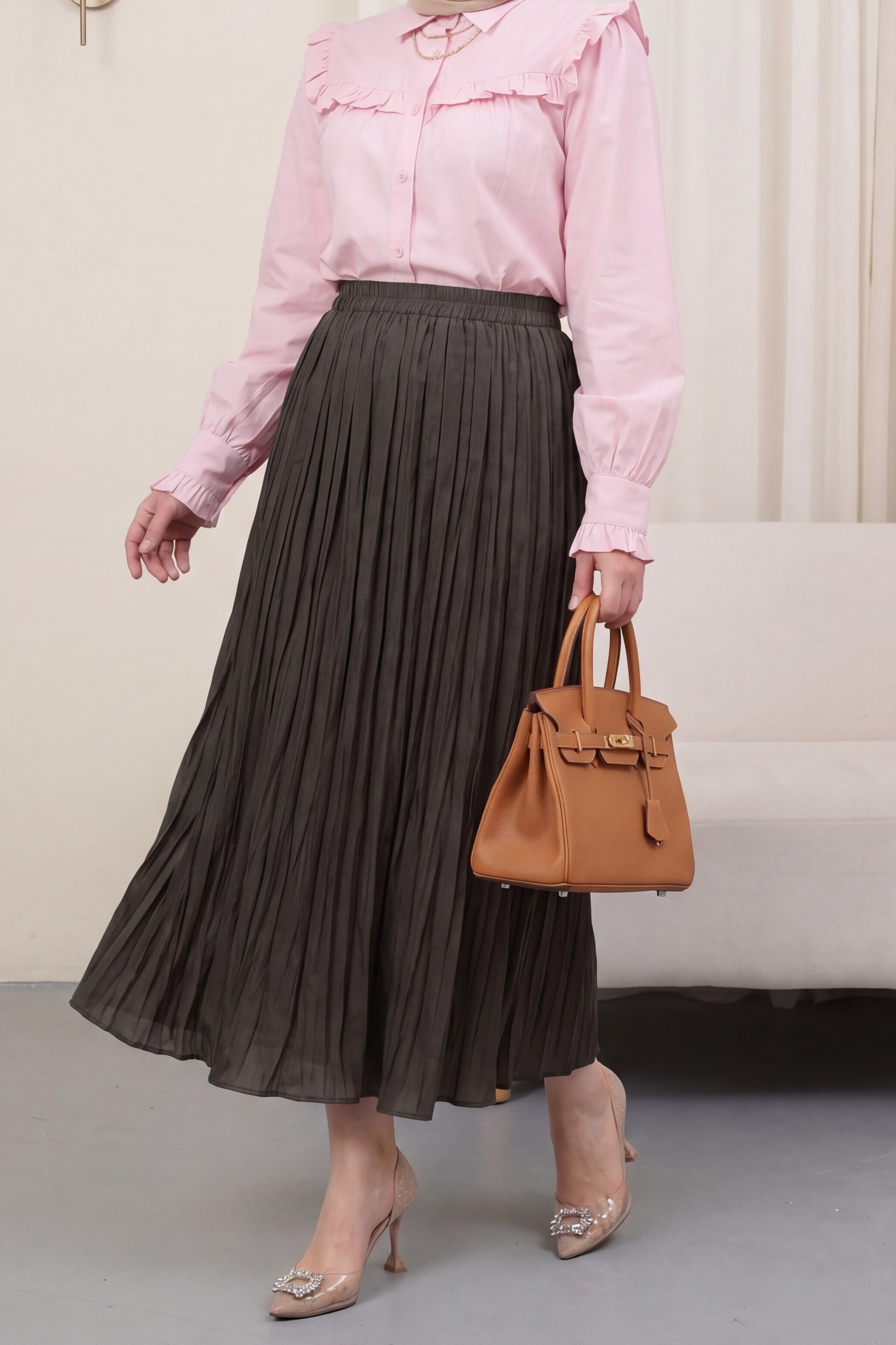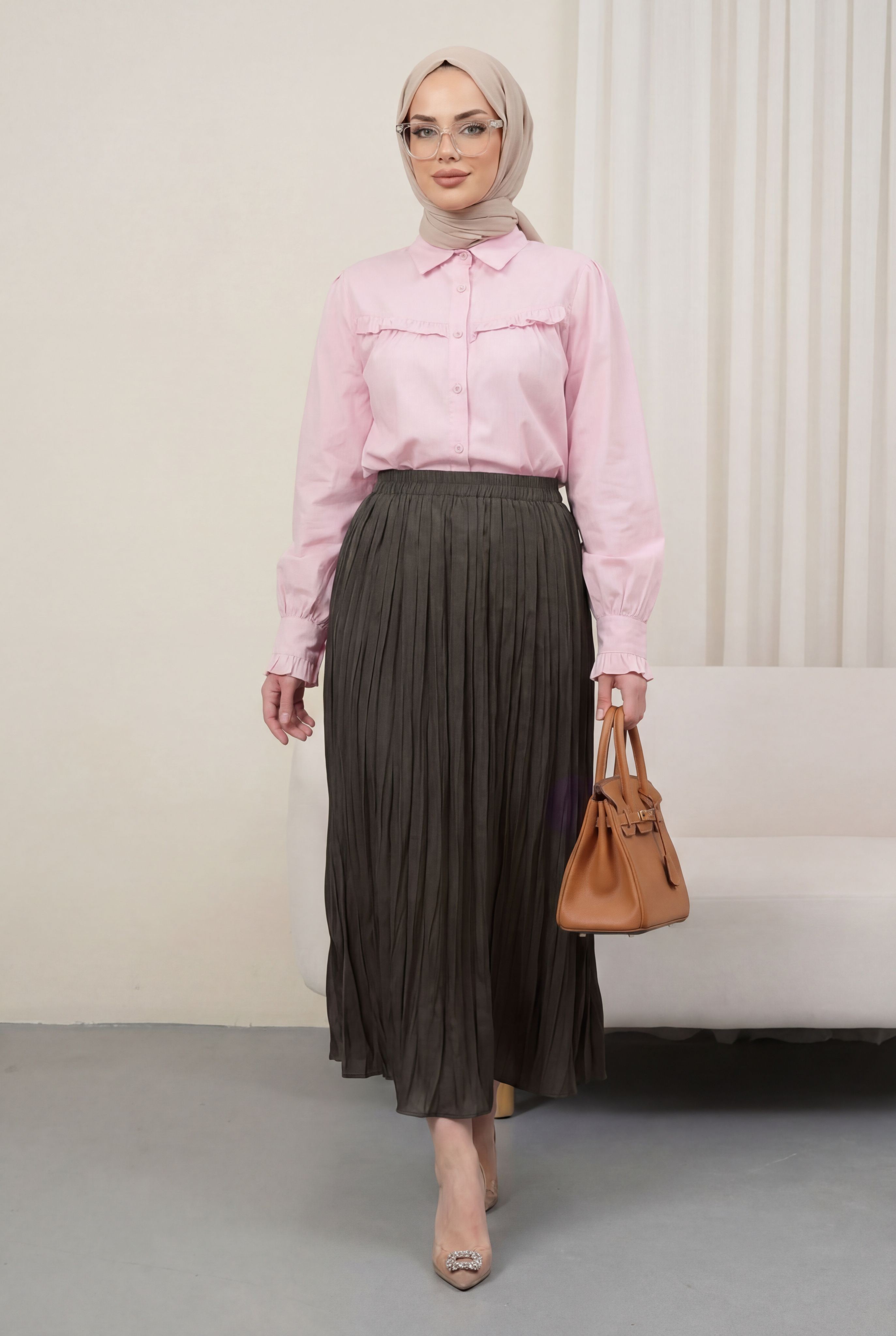 تنورة من قماش المودال بخصر عالٍ مزودة بحزام خصر مطاطي وحزام أمامي وأزرار. -حجر