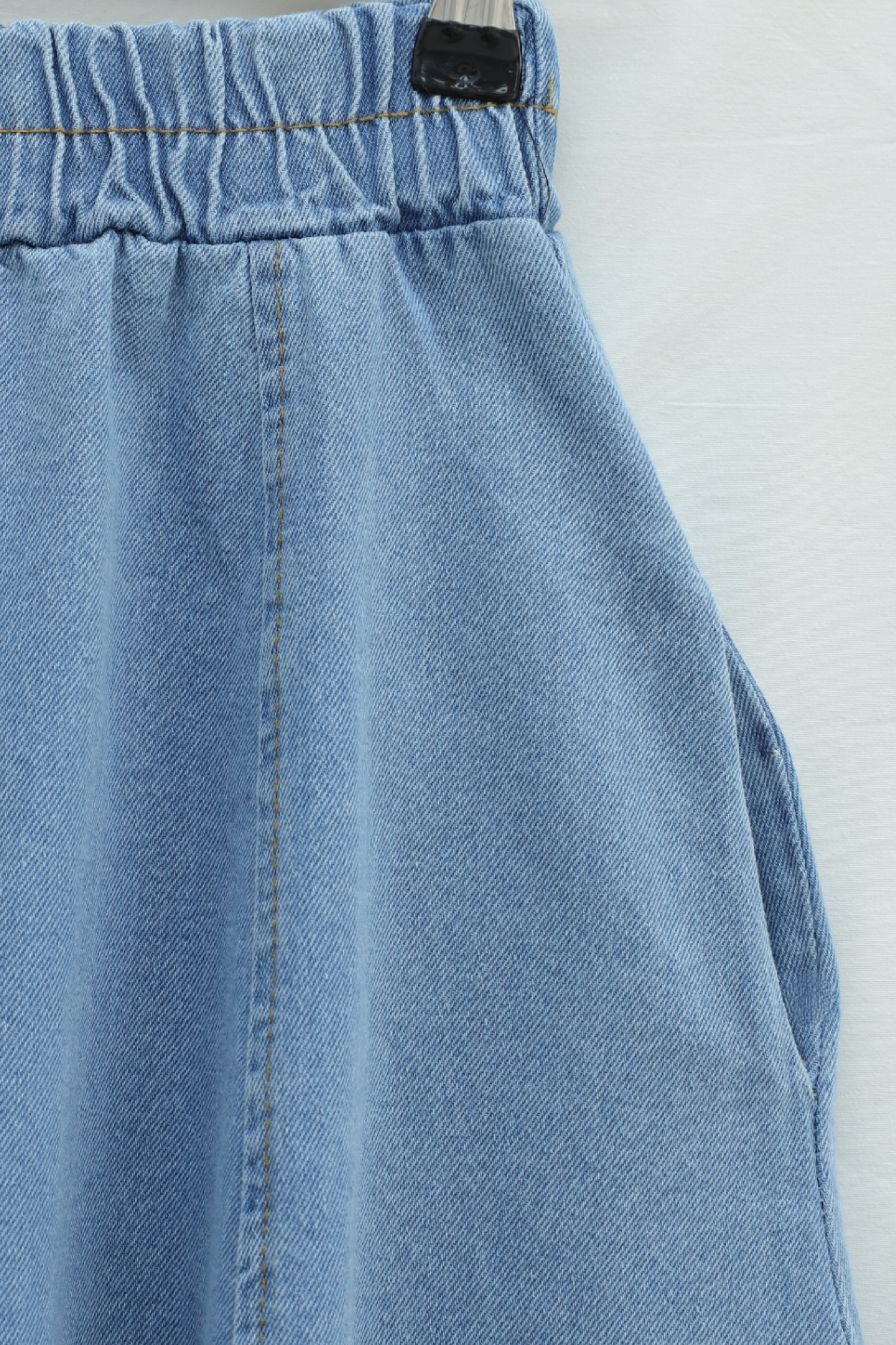 تنورة جينز بجيوب جانبية وحزام خصر مطاطي -أزرق فاتح