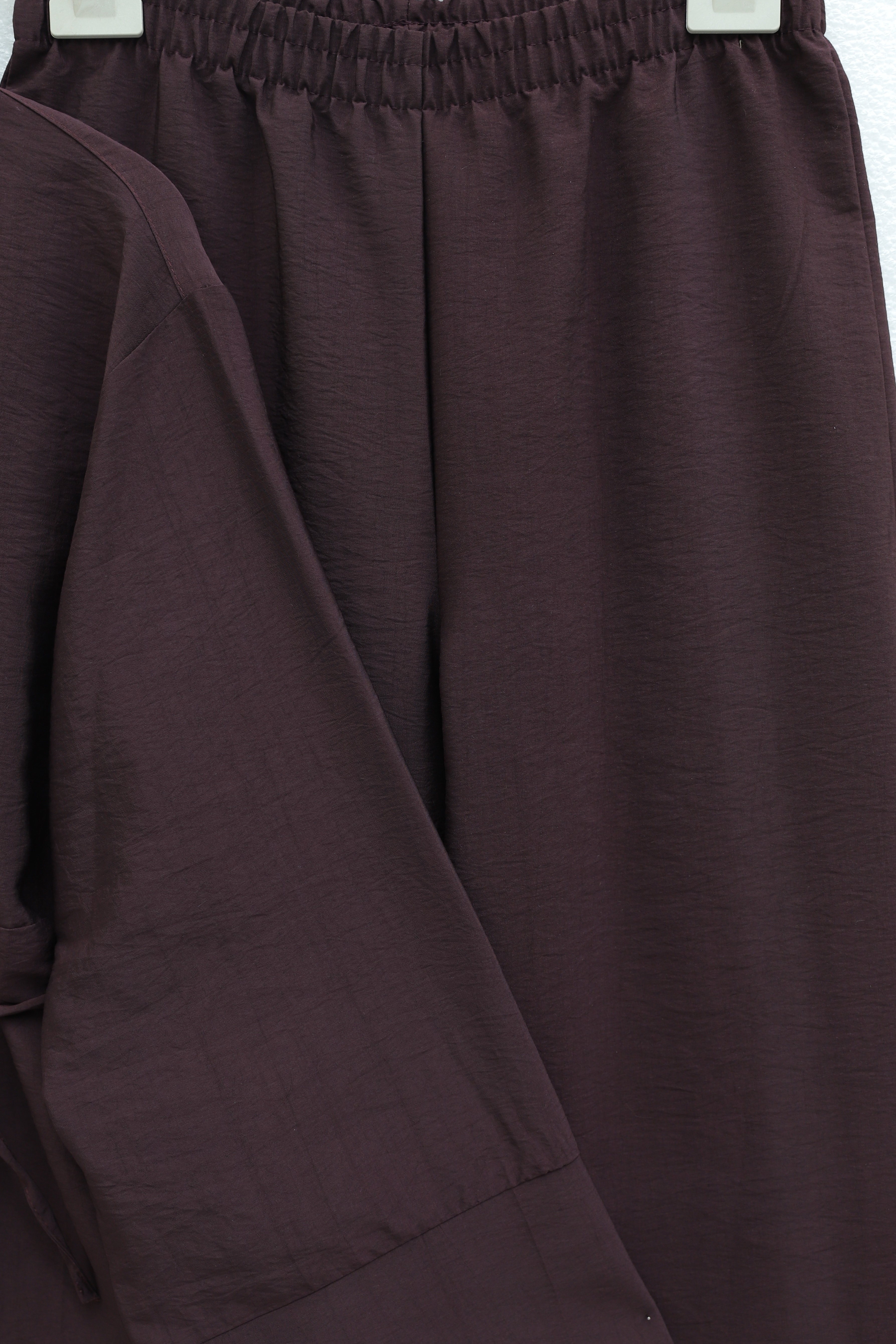 طقم أويشو بفتحة جانبية، وخصر برباط، وأكمام قابلة للطي -لون مدخن