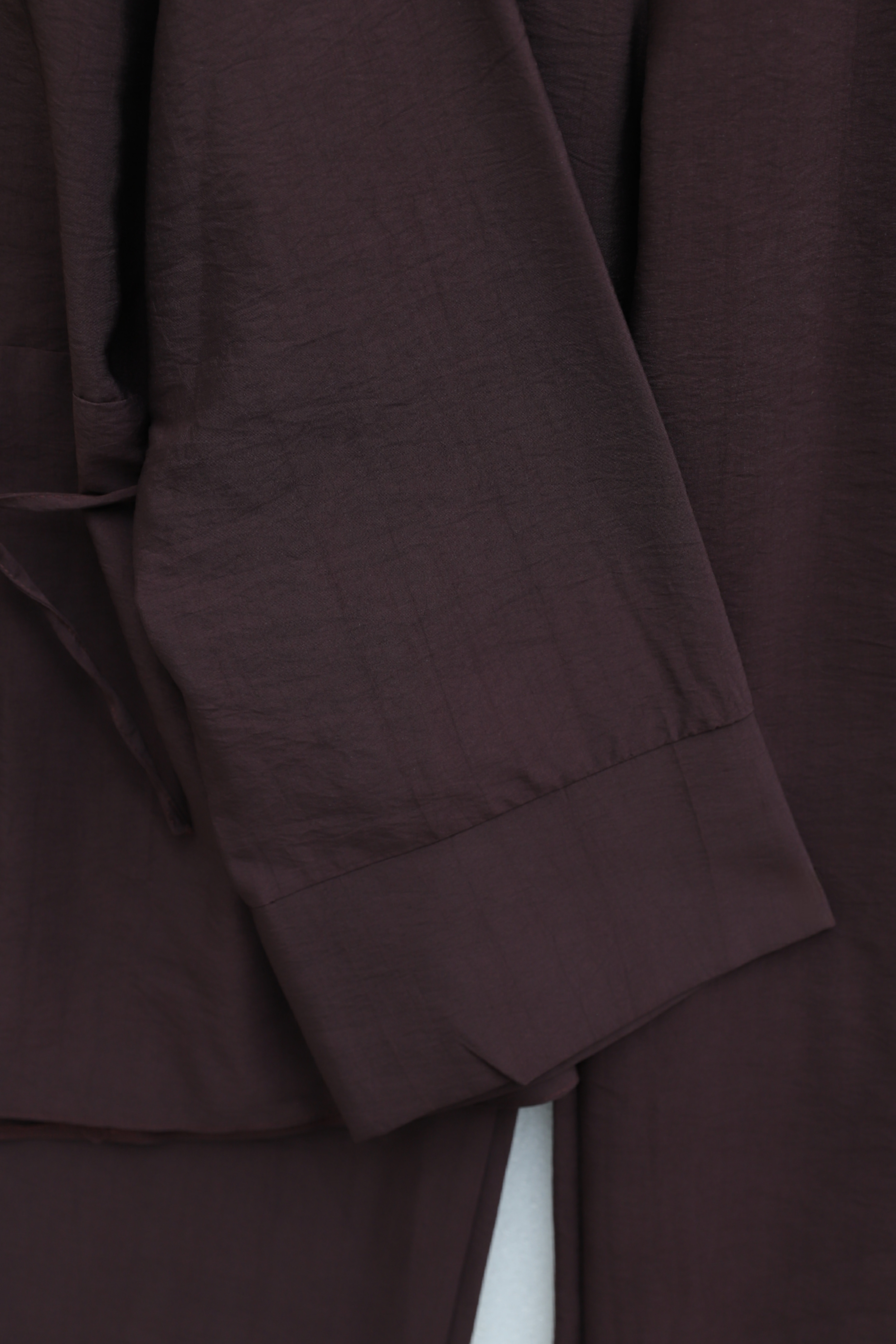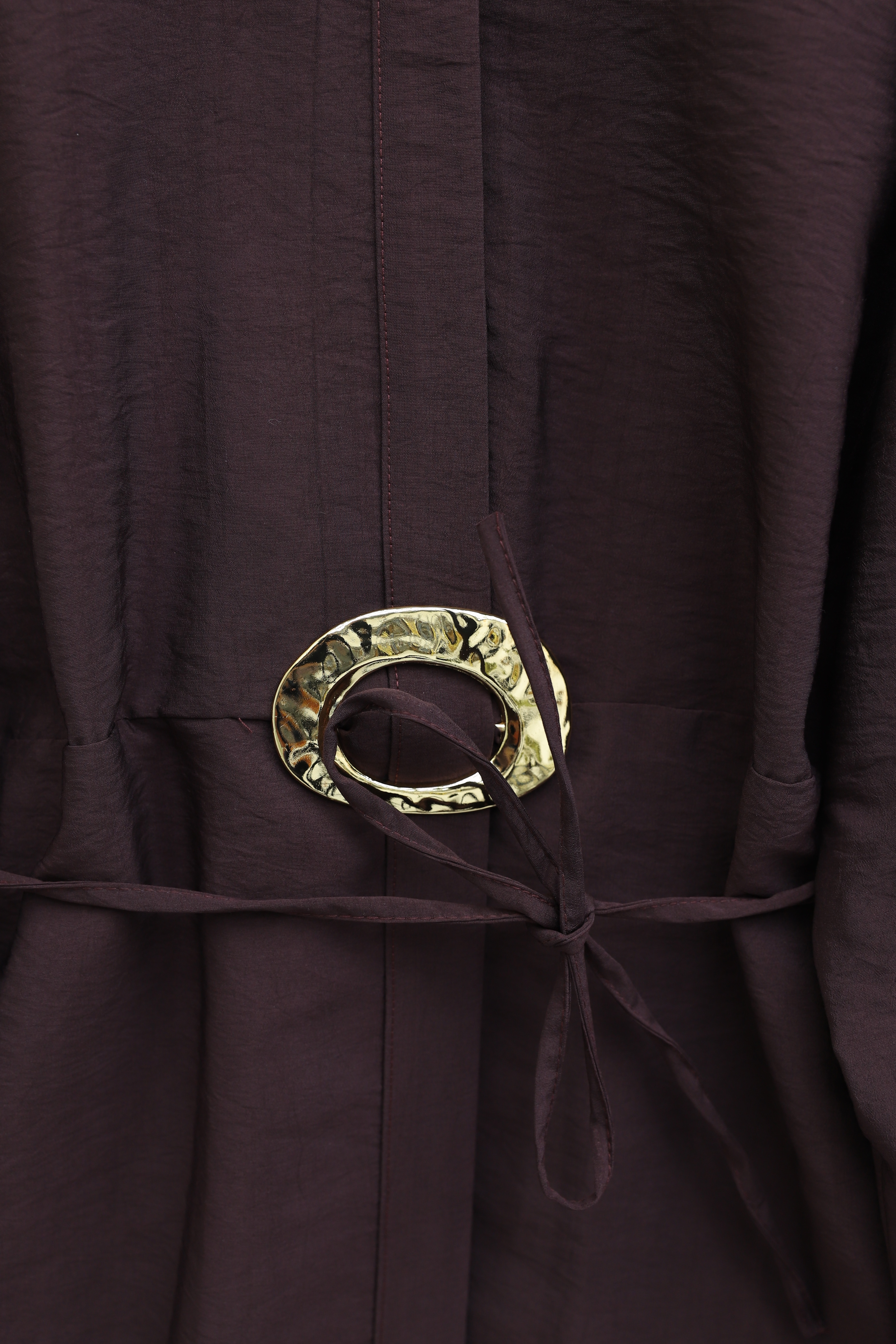 بدلة كوبرا بتفاصيل طي على الأكمام والجزء الأمامي، وحزام عند الخصر، وإغلاق بنصف زر. -لون الخوخ