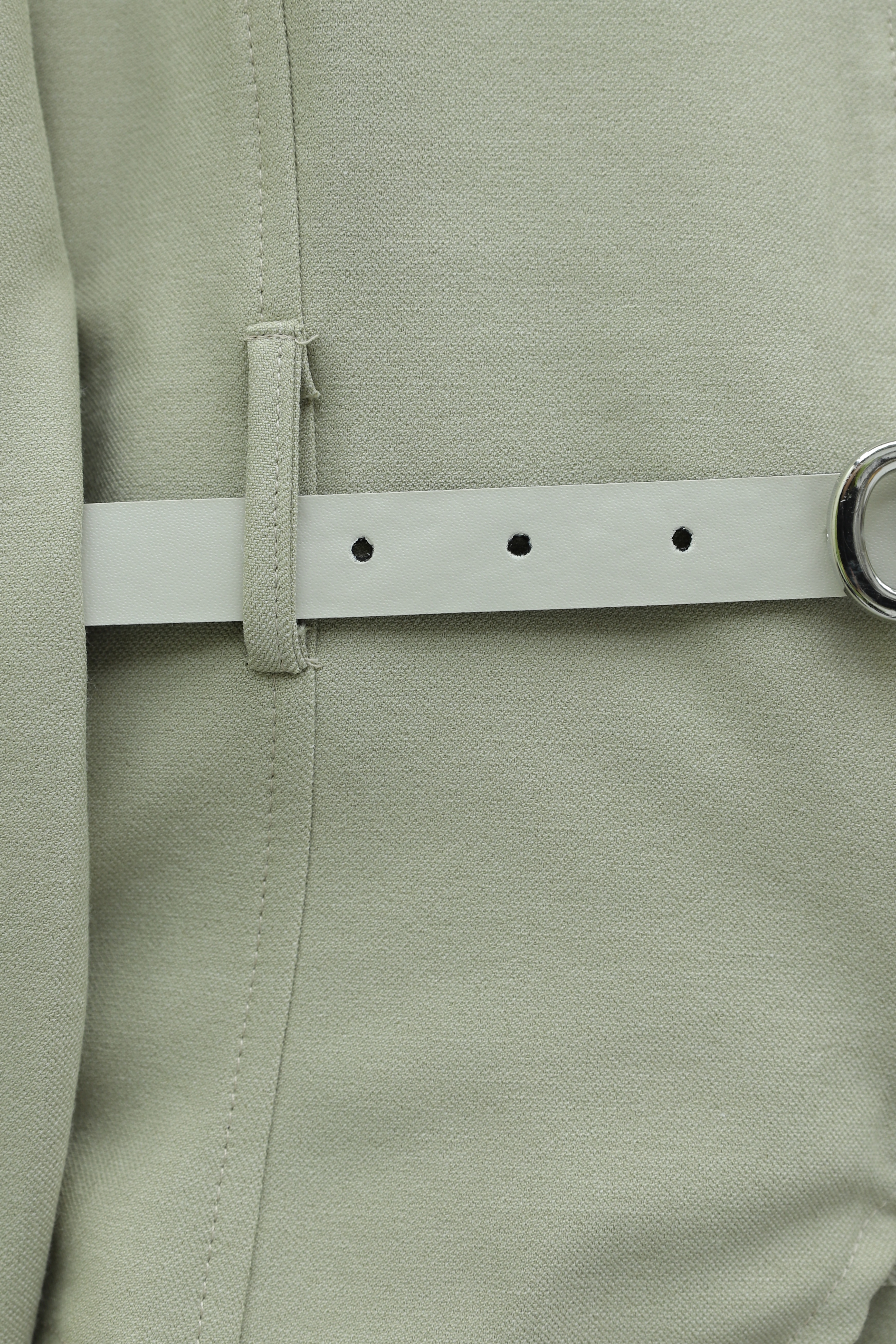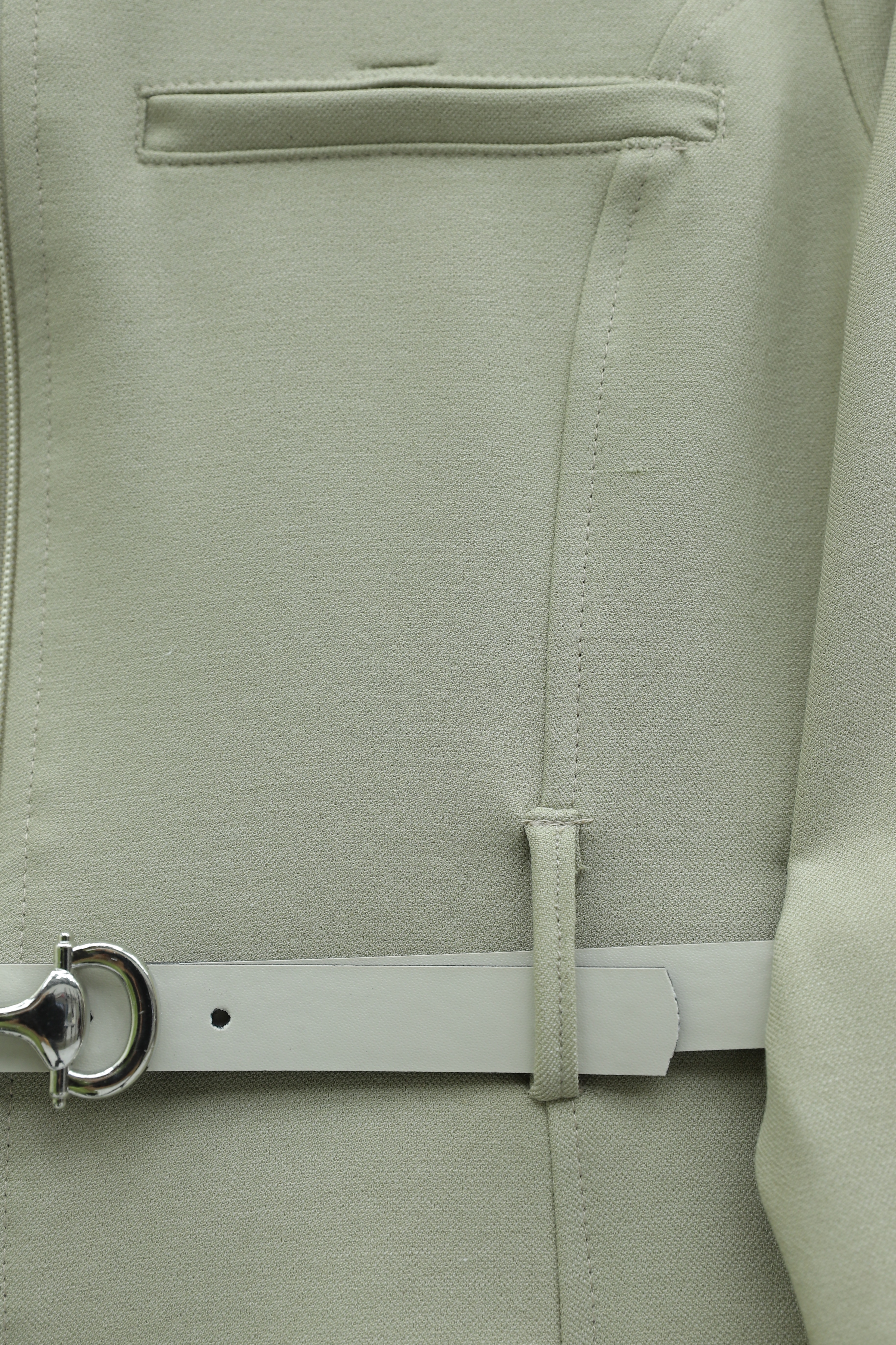 بدلة كوبرا بياقة ربطة عنق، وحواف دانتيل، وكشكشة، وحزام، وبنطال مبطن. -زيتون