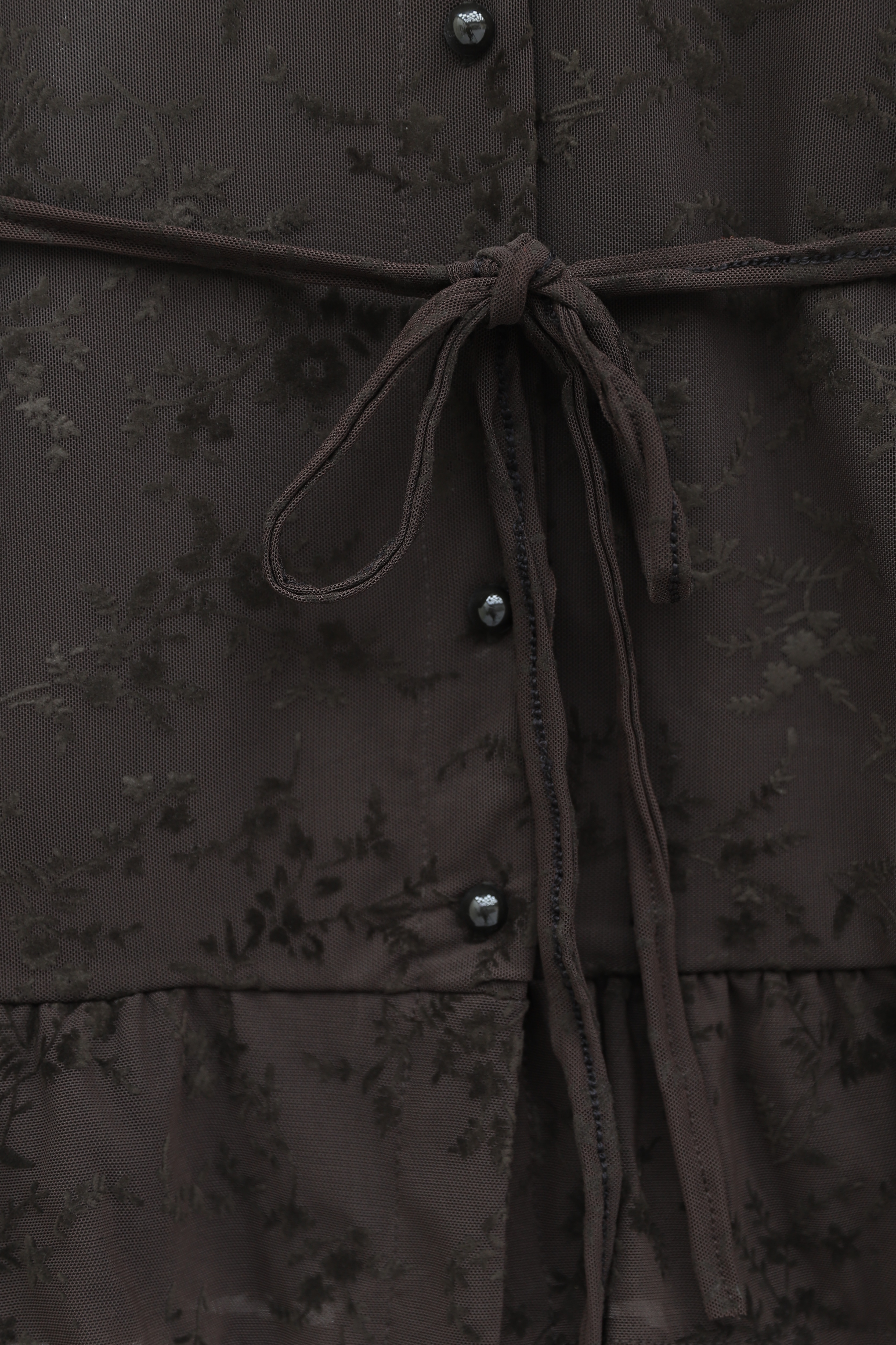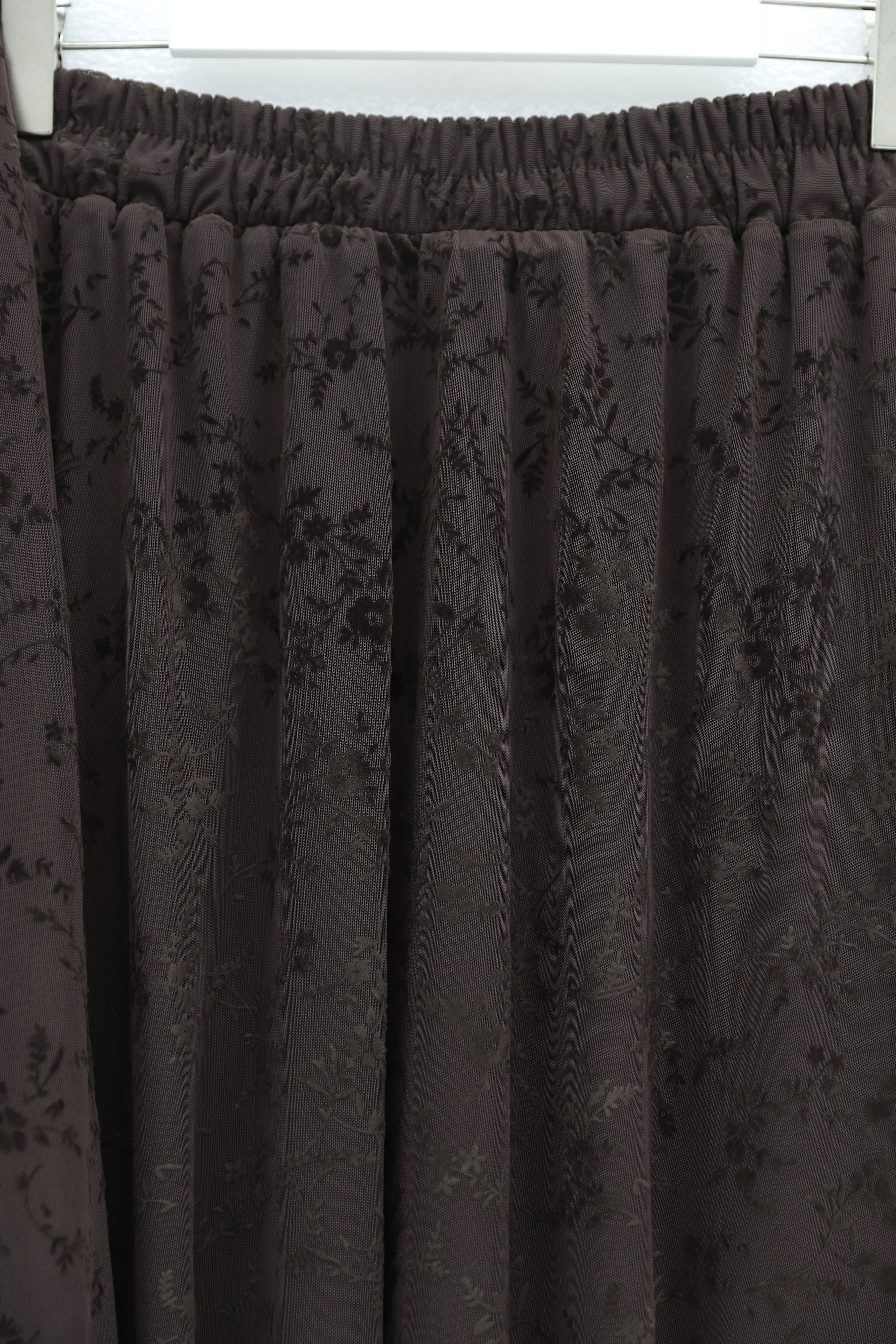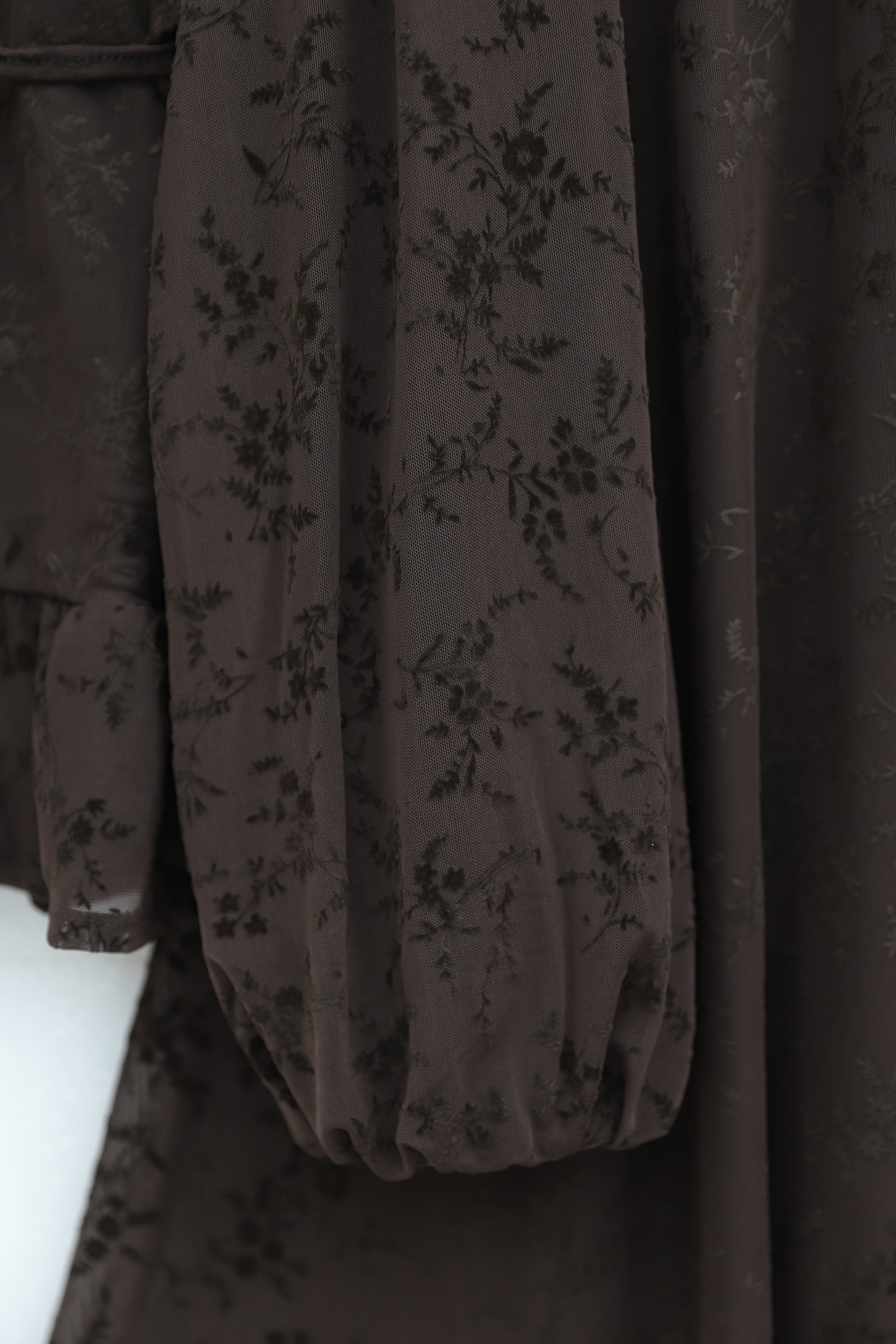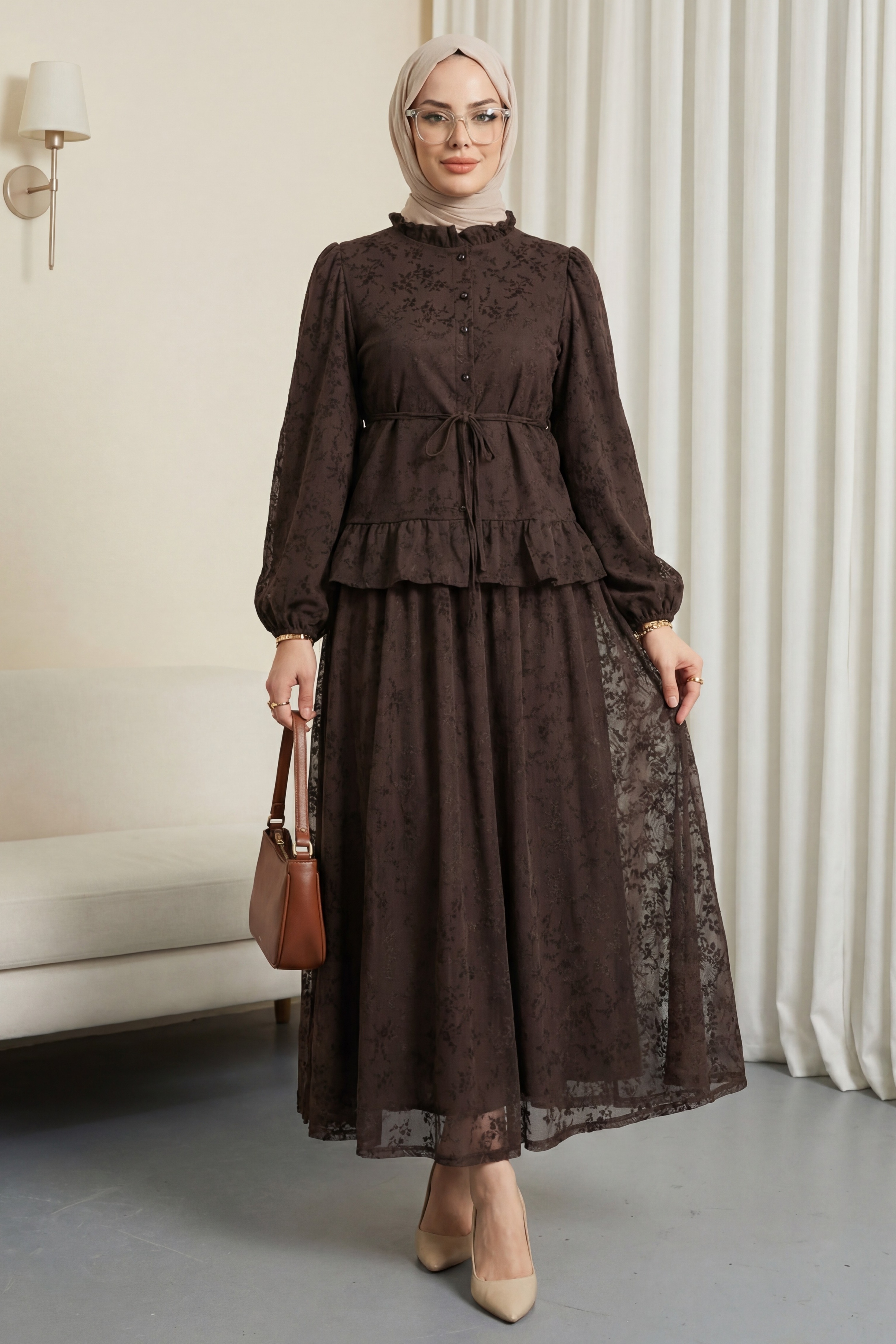 بدلة مطبوعة بنقشة مخملية مع ياقة مكشكشة وتنورة مبطنة -بنى
