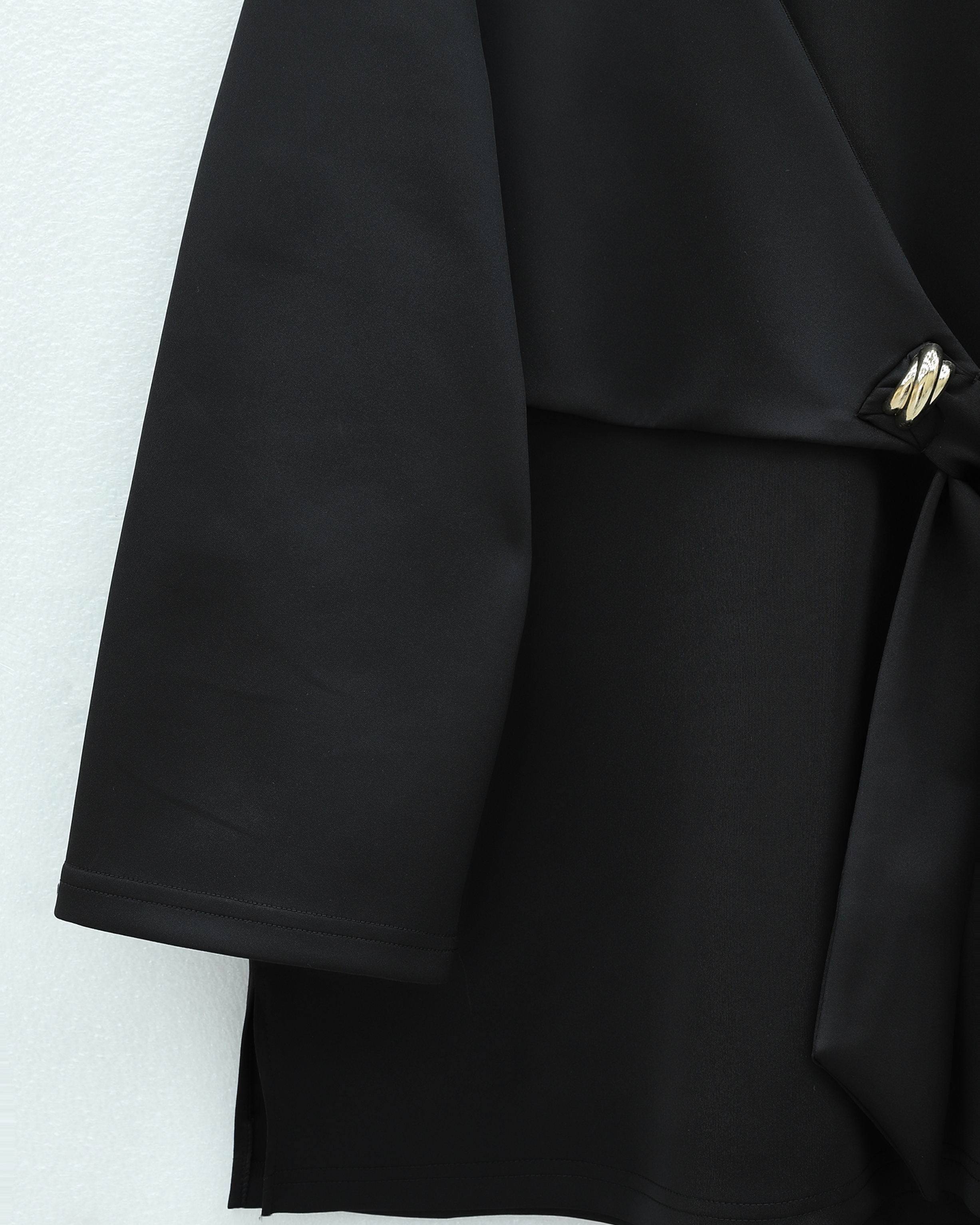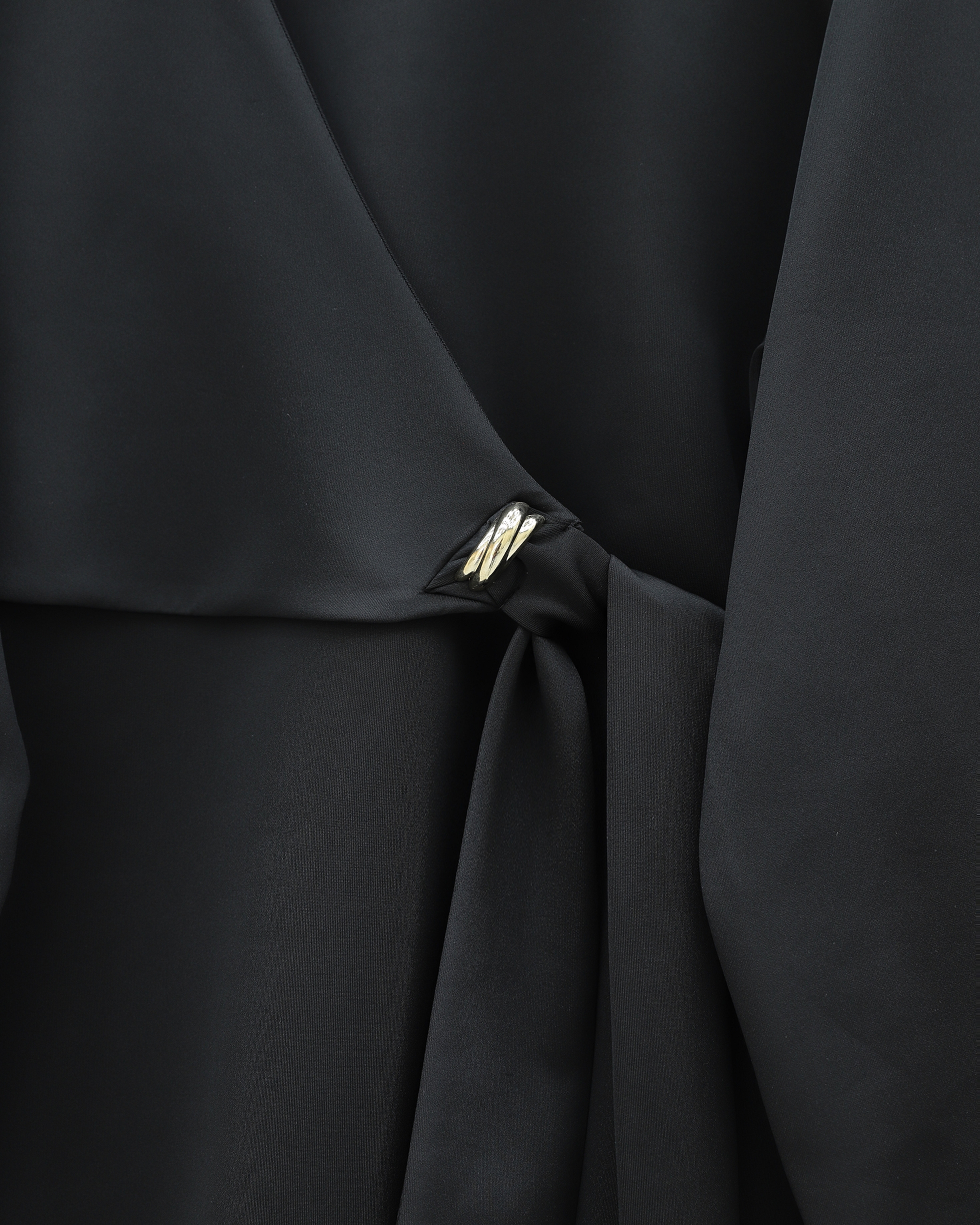 بدلة غوص ذات واجهة أمامية متقاطعة وشق -أسود