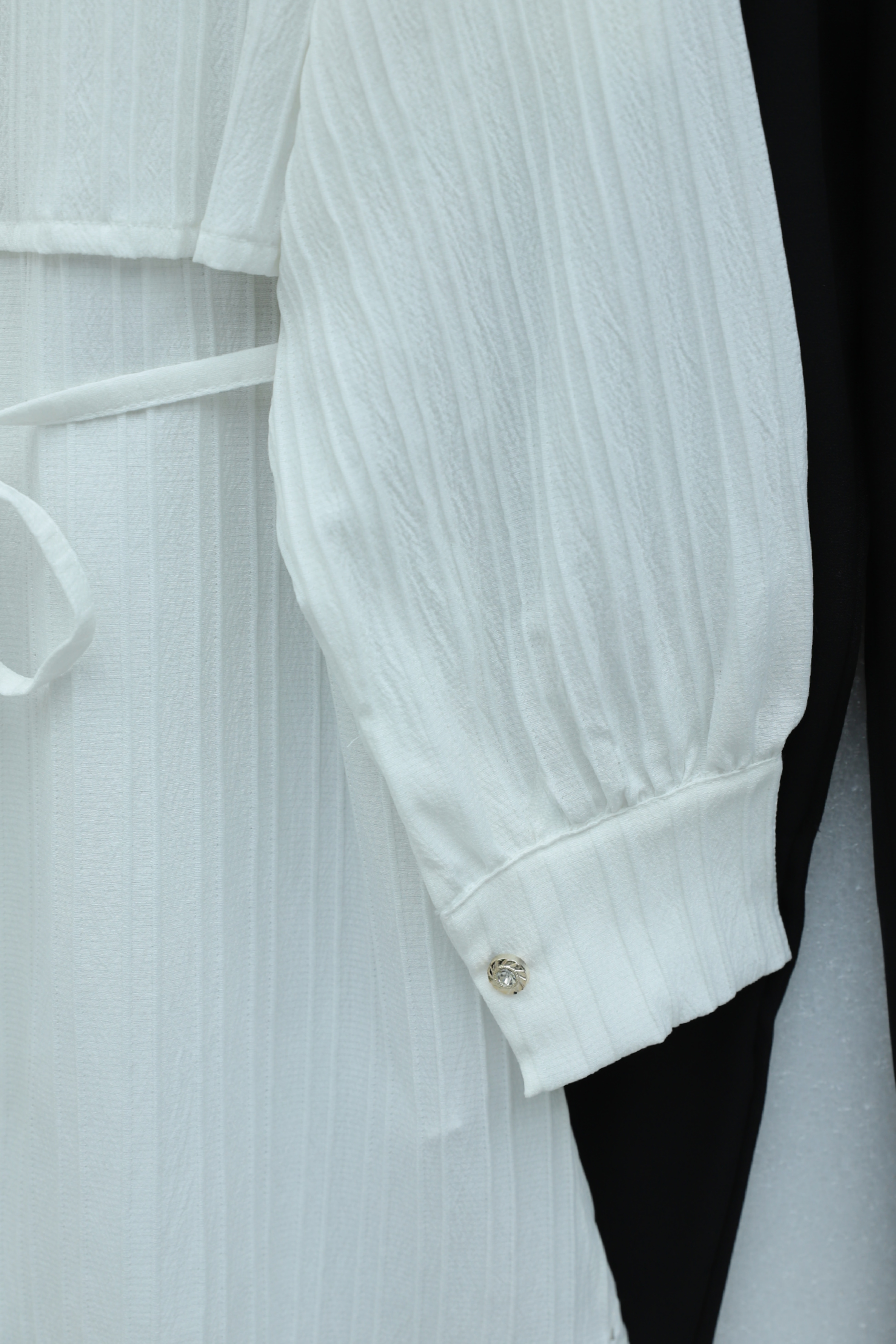 قميص بوليرو مربوط الخصر مع أزرار وتفاصيل حجرية -أبيض
