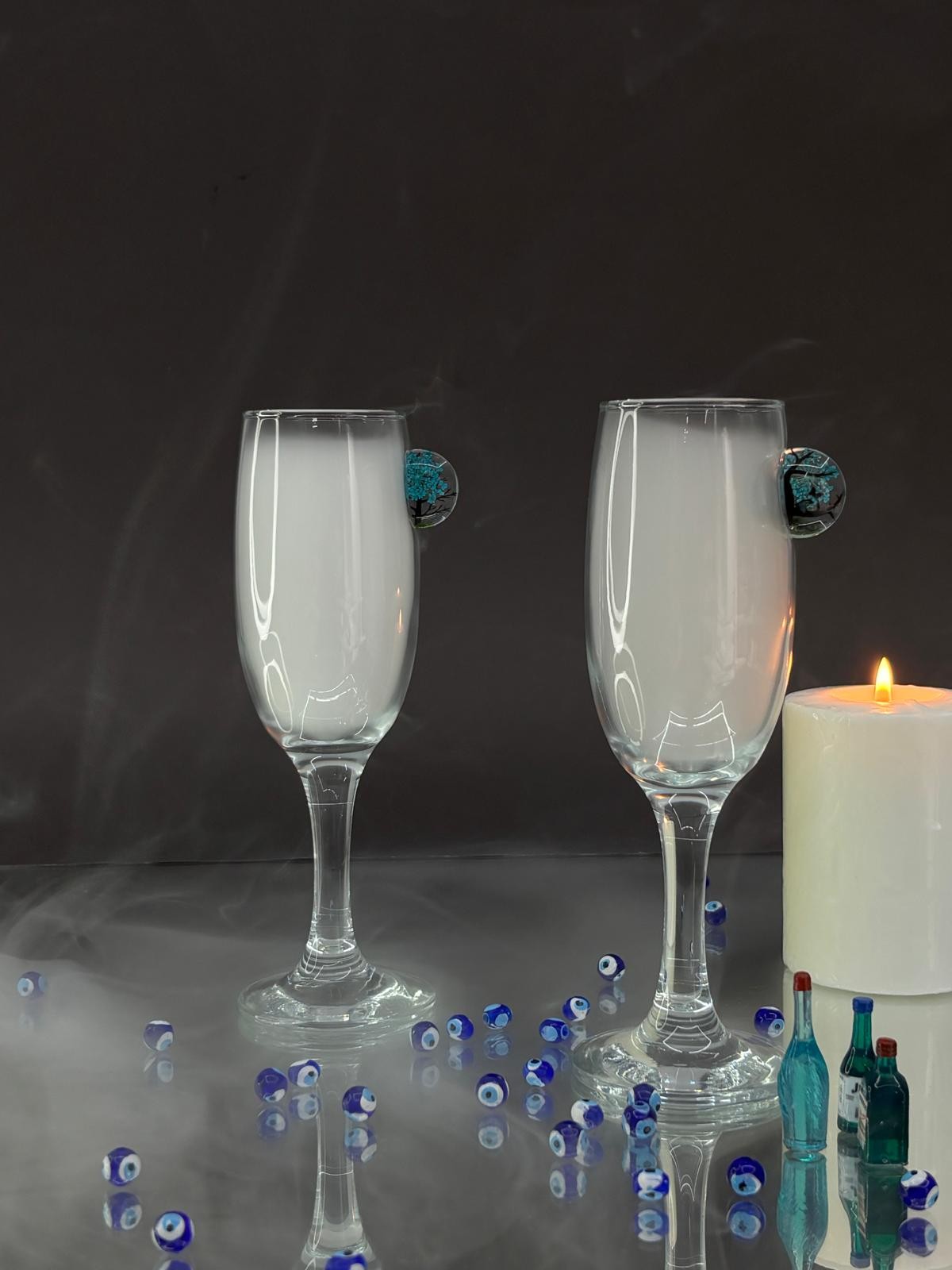 Desen: Mavi Ağaç Figürlü Kokteyl Kadehi