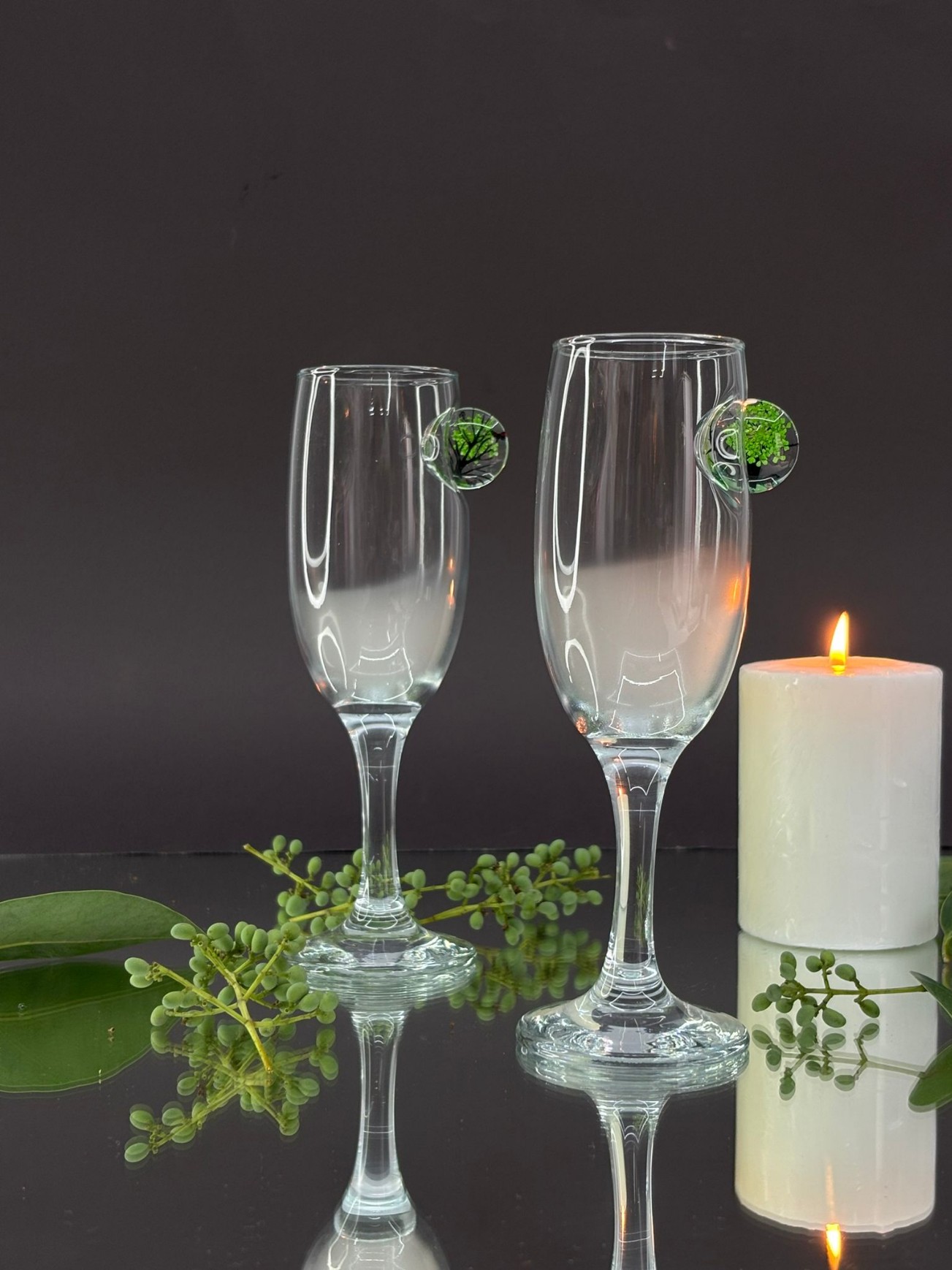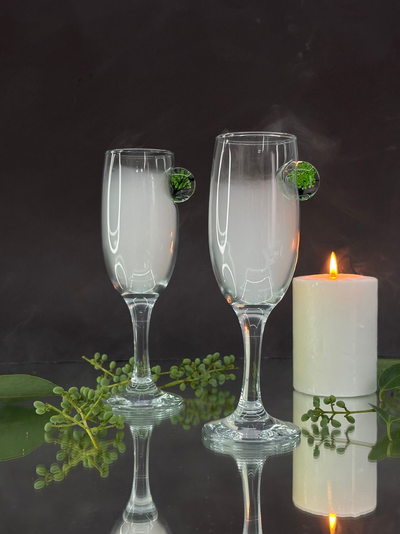 Yeşil Çiçekli Kokteyl Kadehi, sade cam yüzeyle birleşerek zamansız ve sofistike bir görünüm sunar.