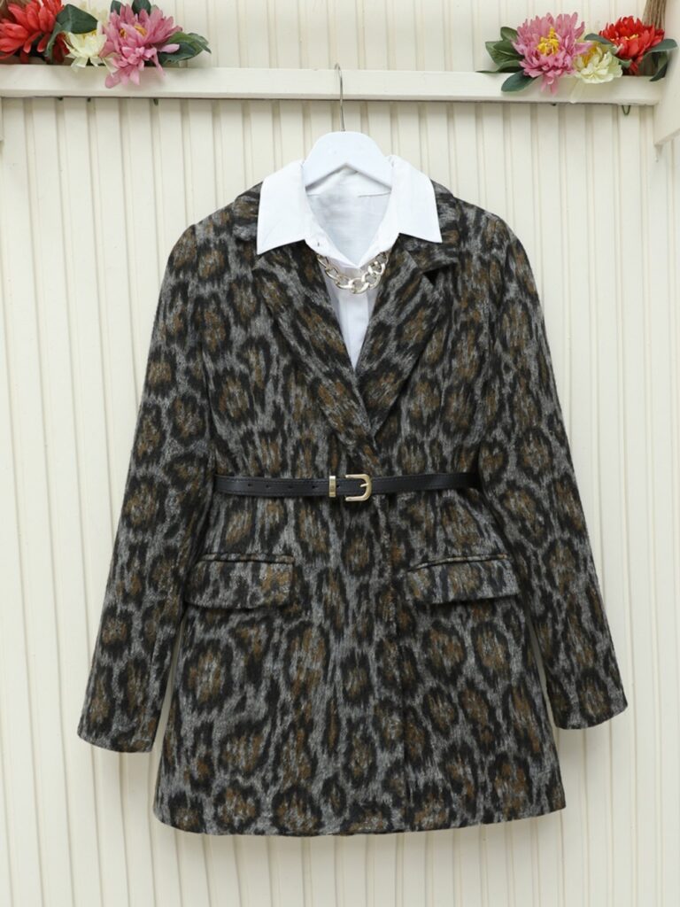 Cep Detaylı Kemerli Leopar Desen Ceket: Her Mevsimin Yıldızı