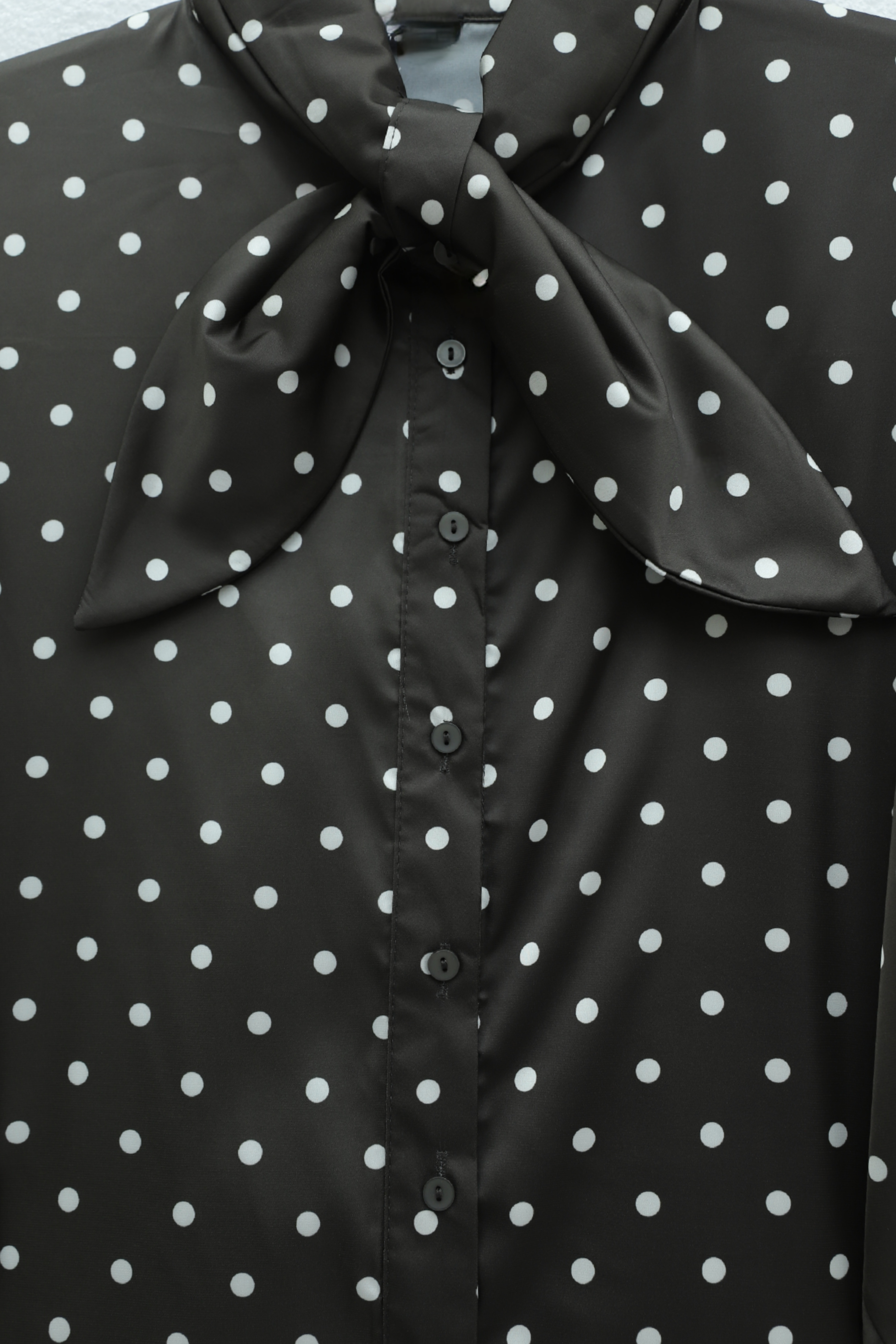 Polka Dot Satin Shirt with Scarf Collar and Full -Dark Coffee