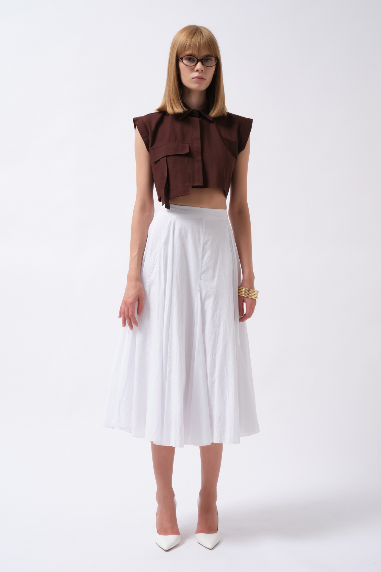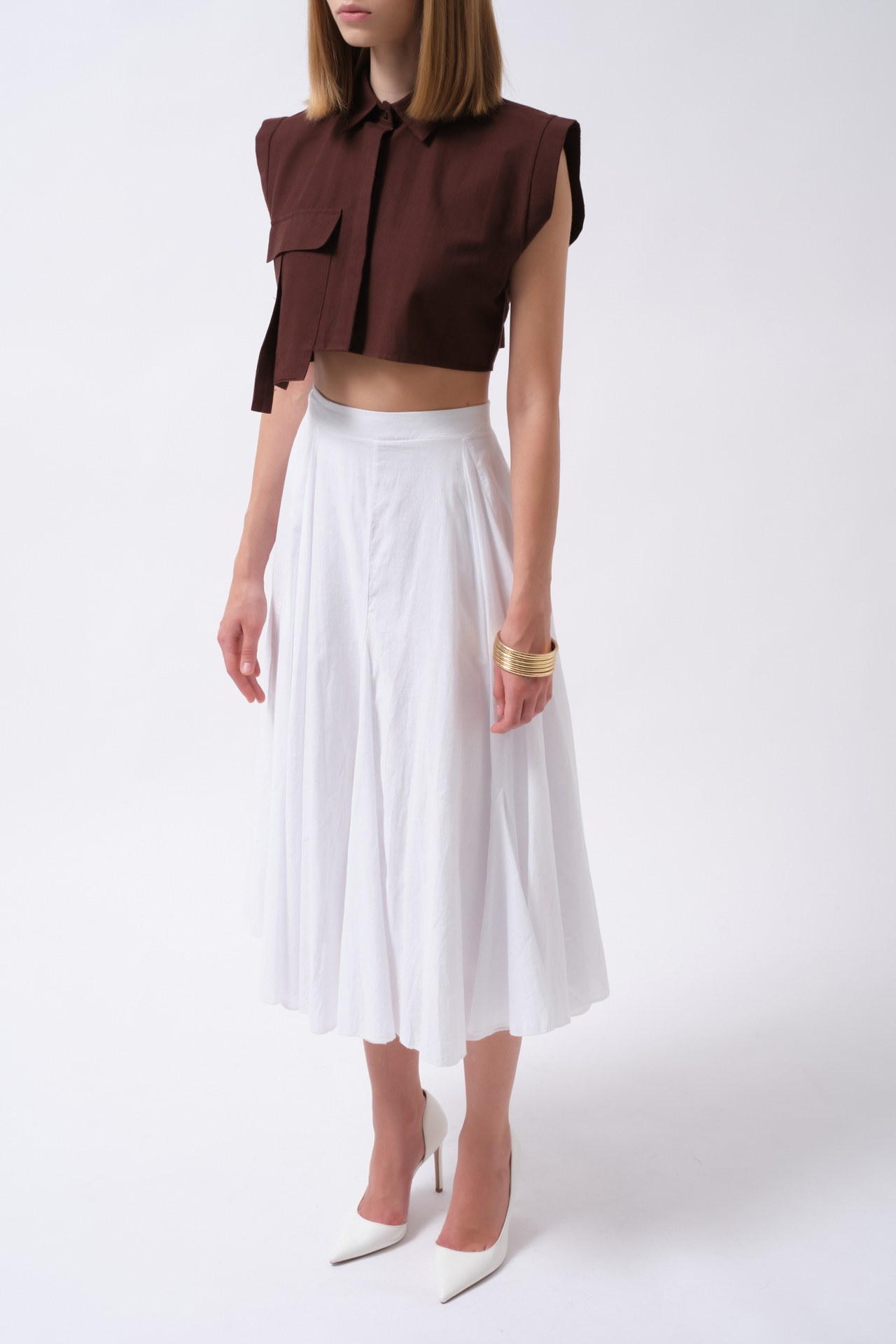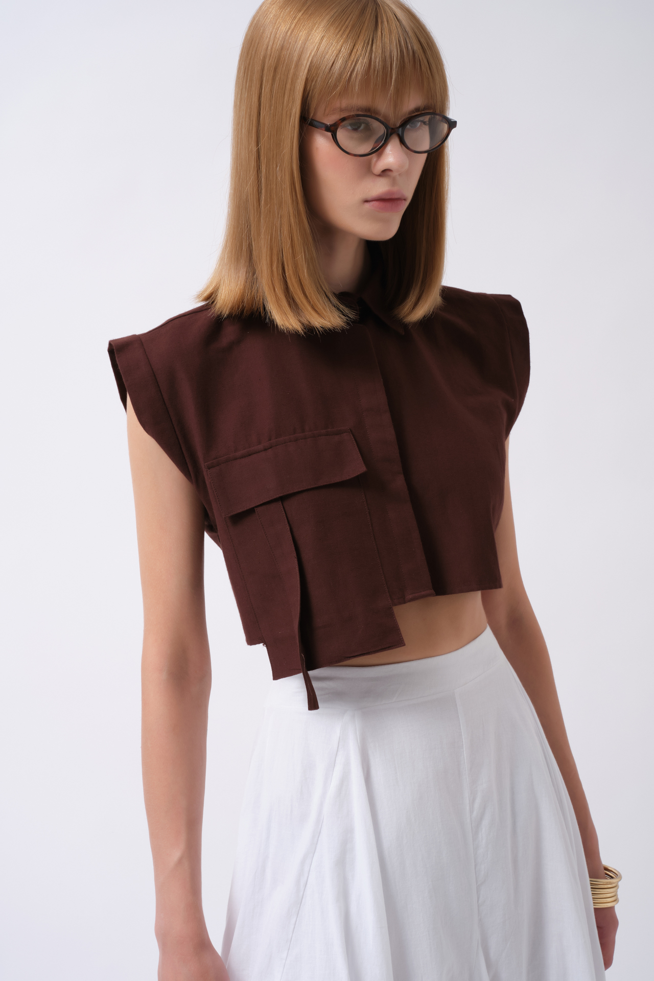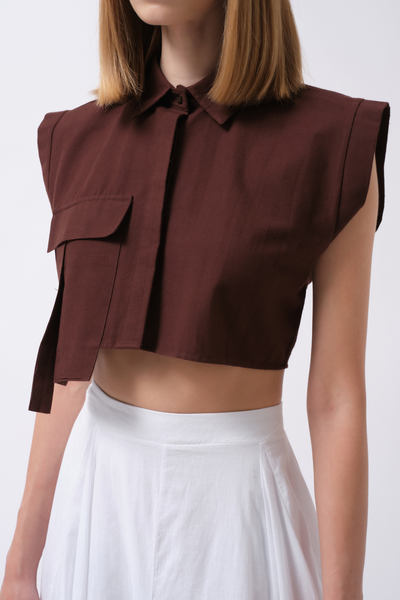Sleeveless Linen Shirt with Pocket Detail 52218035
