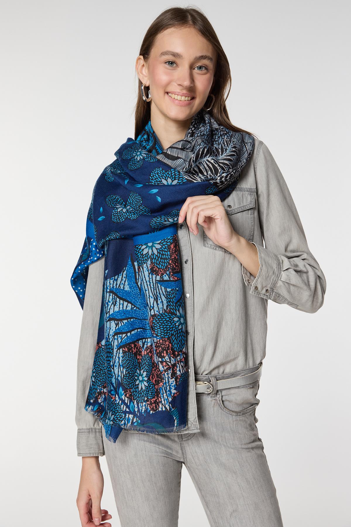 15077 Floral Patterned Saxe Blue Shawl