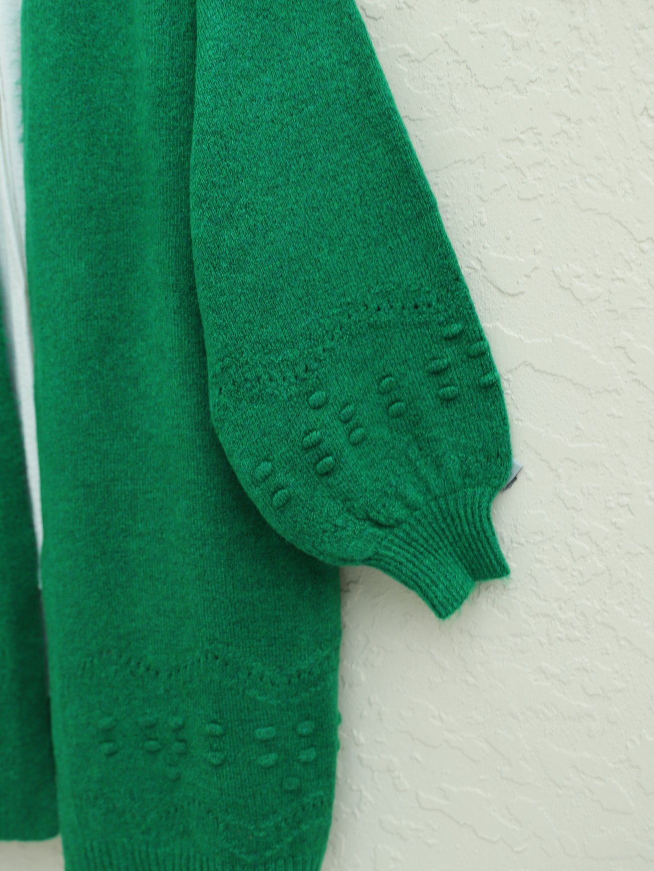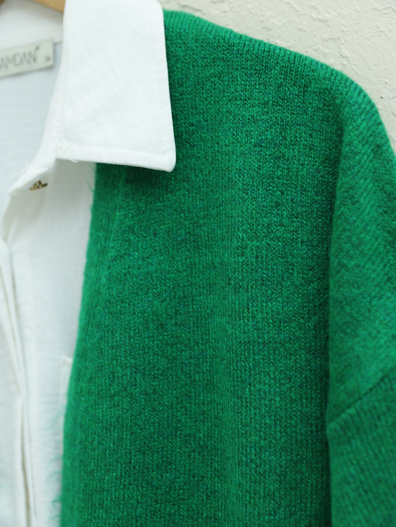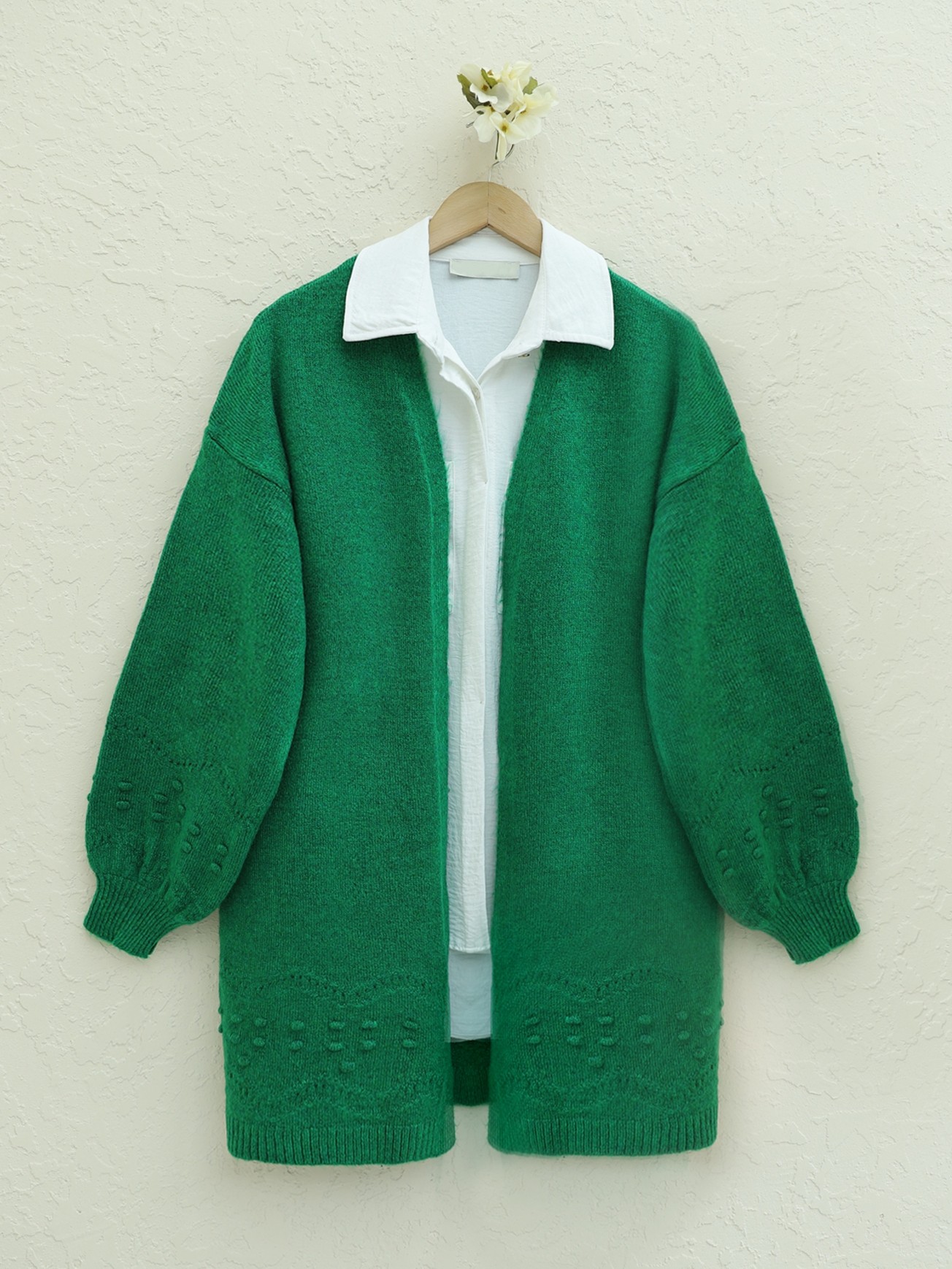 The pom-pom sleeve and hem knit cardigan is a modern piece with a fun and stylish design. The pom-pom details add a lively and playful touch to the cardigan, giving a unique twist to the classic knit look. The soft and comfortable knit fabric keeps you warm in cooler weather while providing an elegant appearance. Suitable for both everyday wear and casual outfits, this cardigan comes in various color options to complement every style. Offering both style and comfort, this cardigan is a perfect addition to your wardrobe.