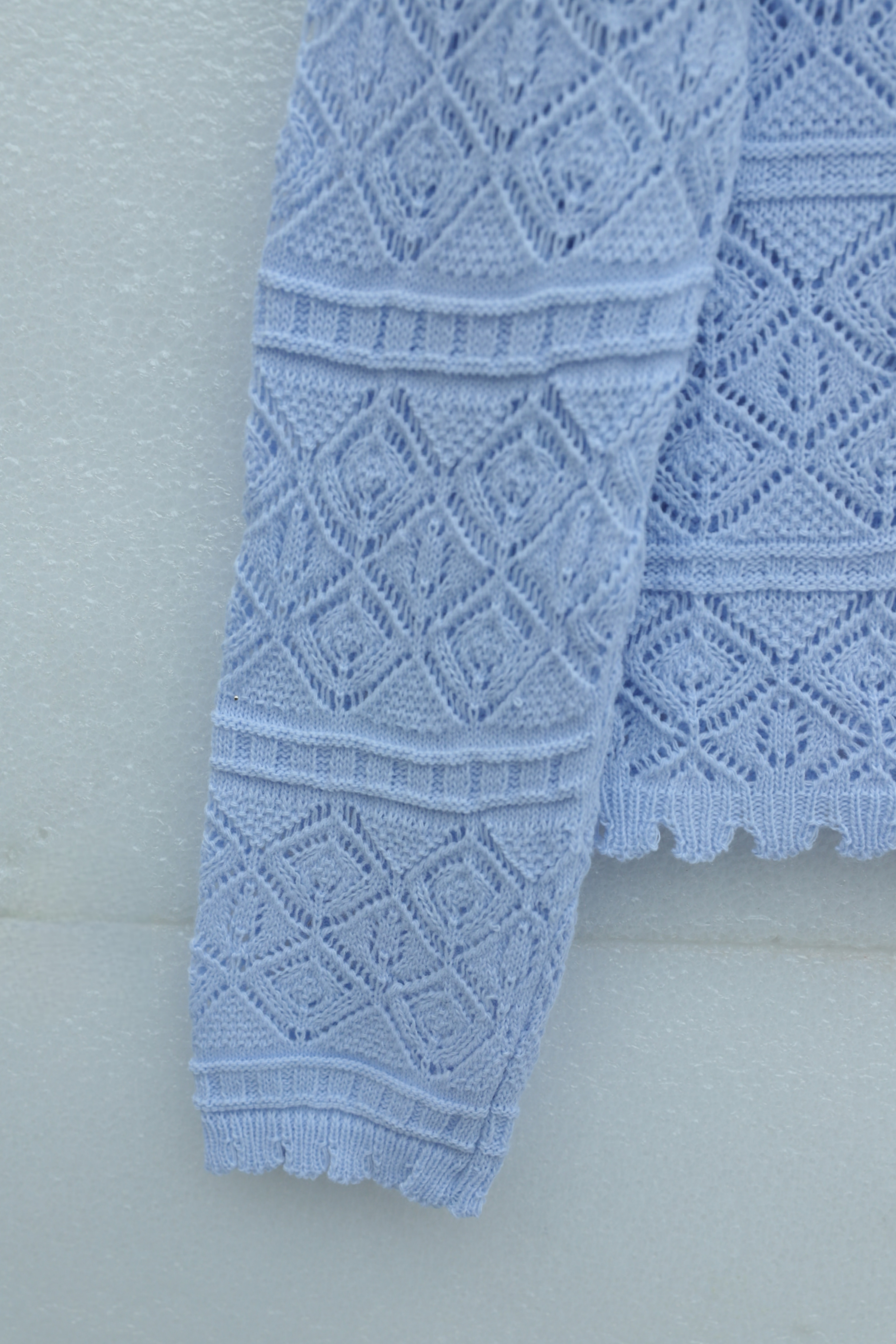 Buttoned Openwork Knit Cardigan -Baby Blue