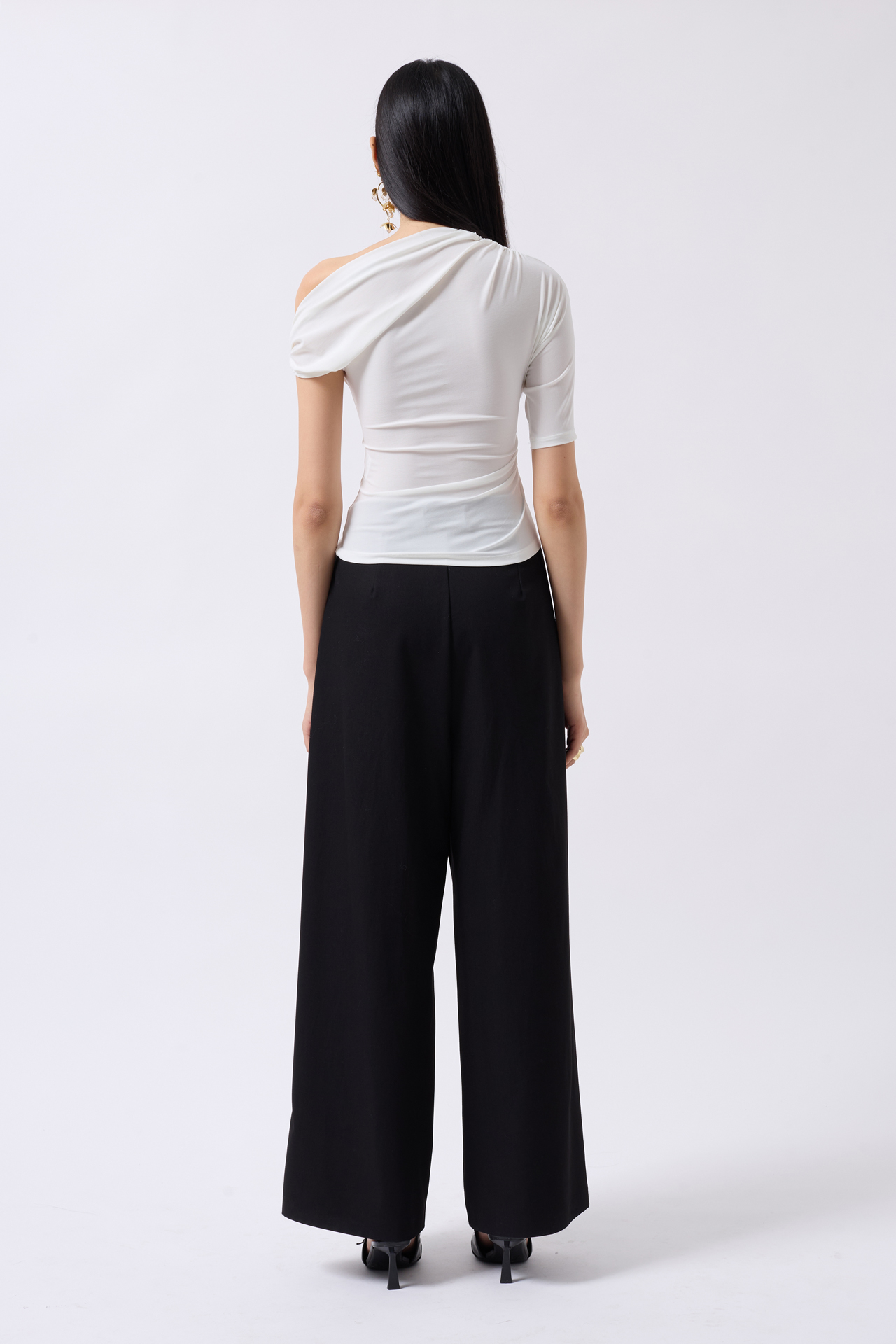 Asymmetrical Cut, Accessory Detailed, Slim Fit, Lycra and Flexible Fabric Blouse