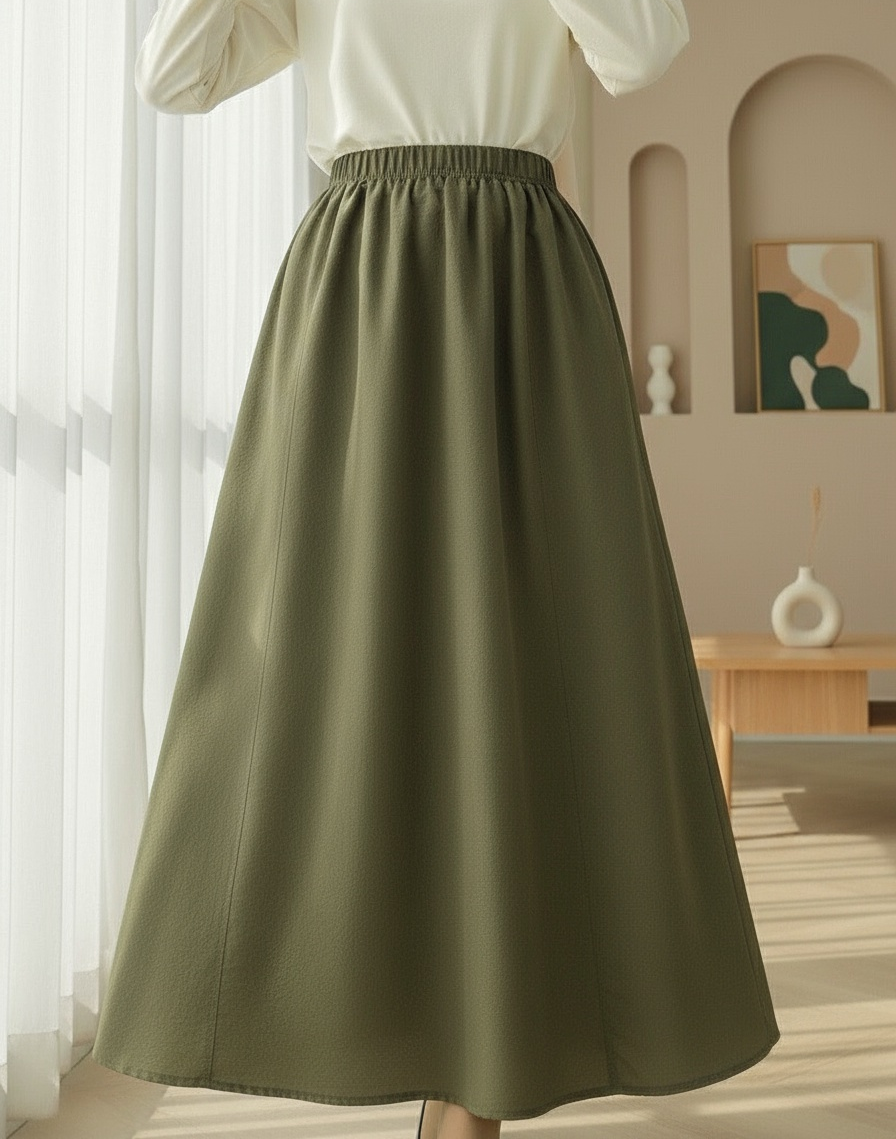 Elastic Waist Parachute Skirt with Pockets -Khaki