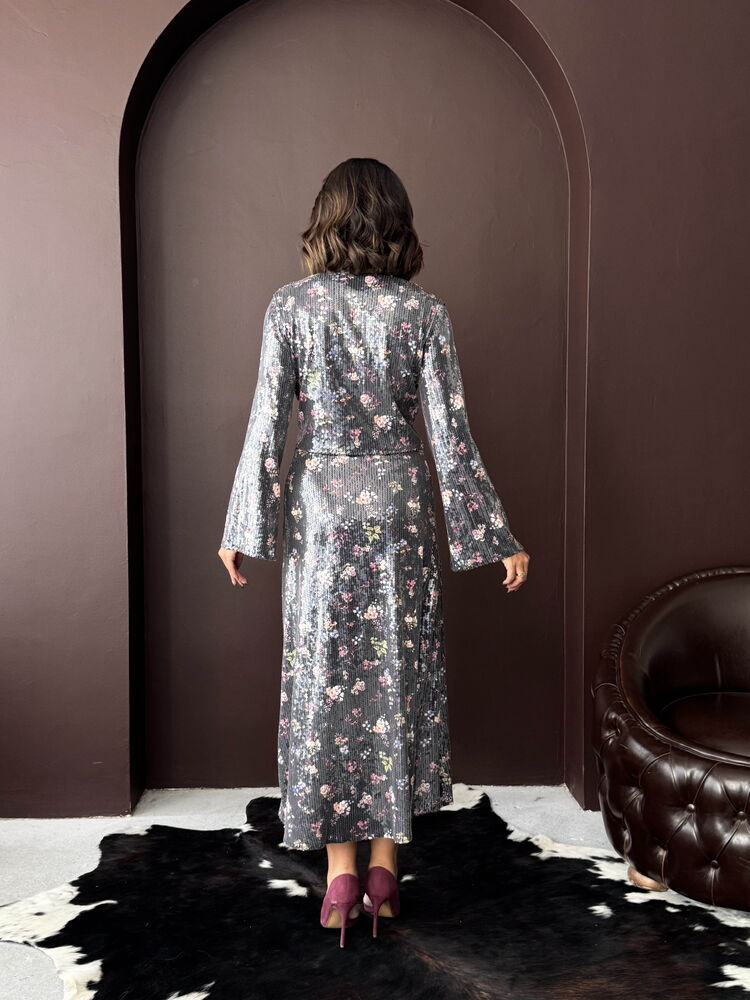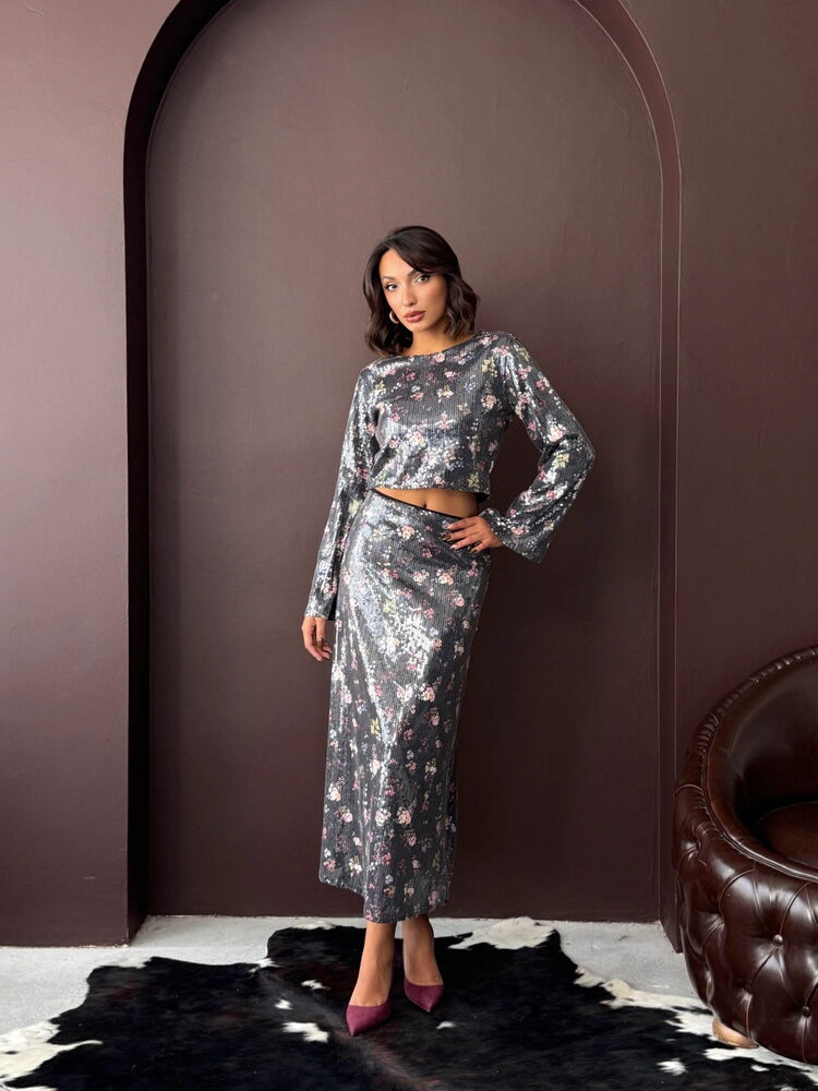 F 2015 FLORAL PRINTED SEQUIN LONG SKIRT