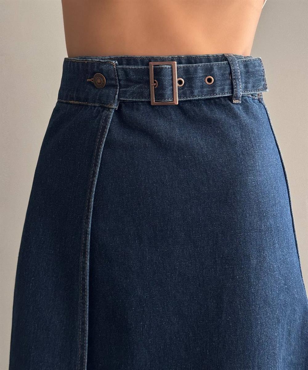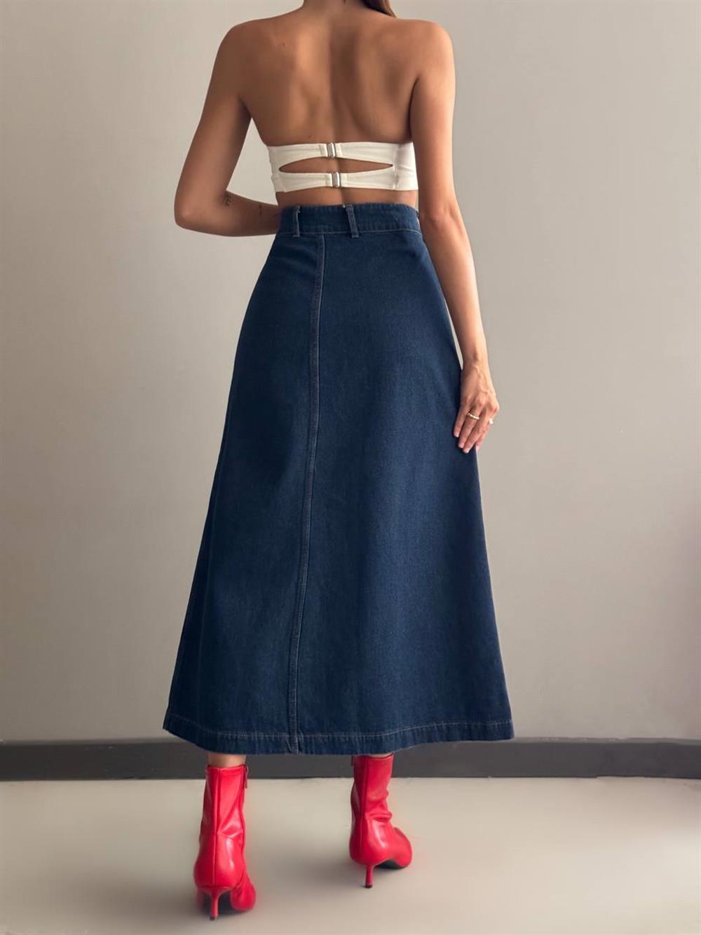 Slit Detailed Ankle Length Dark Blue Skirt