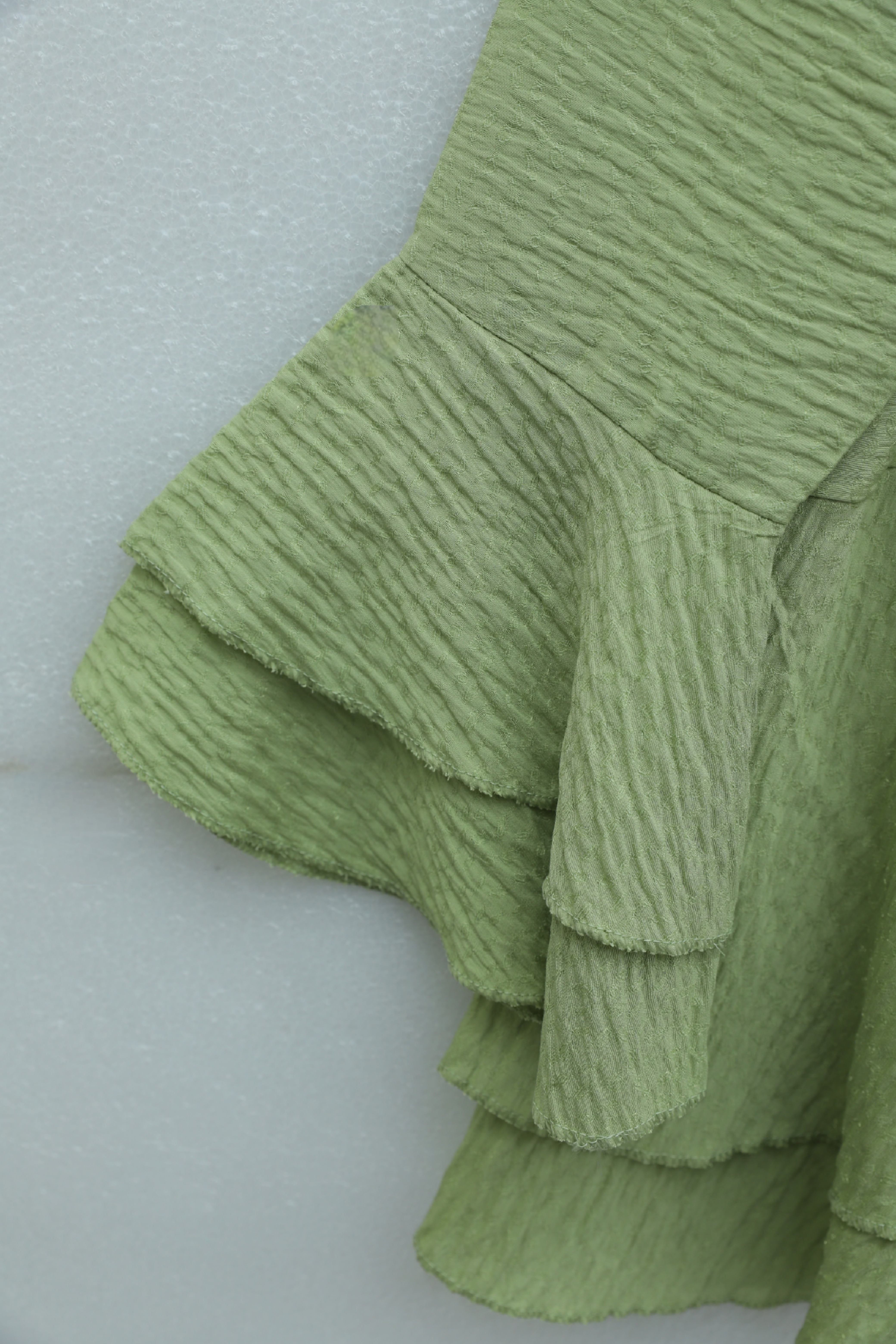 Pleated Lace-Up Jacquard Waffle Set -PISTACHIO GREEN