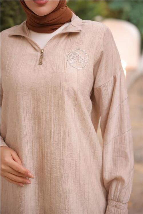 STOCK NAME: - Half-Zip Collar Tunic with Logo Print