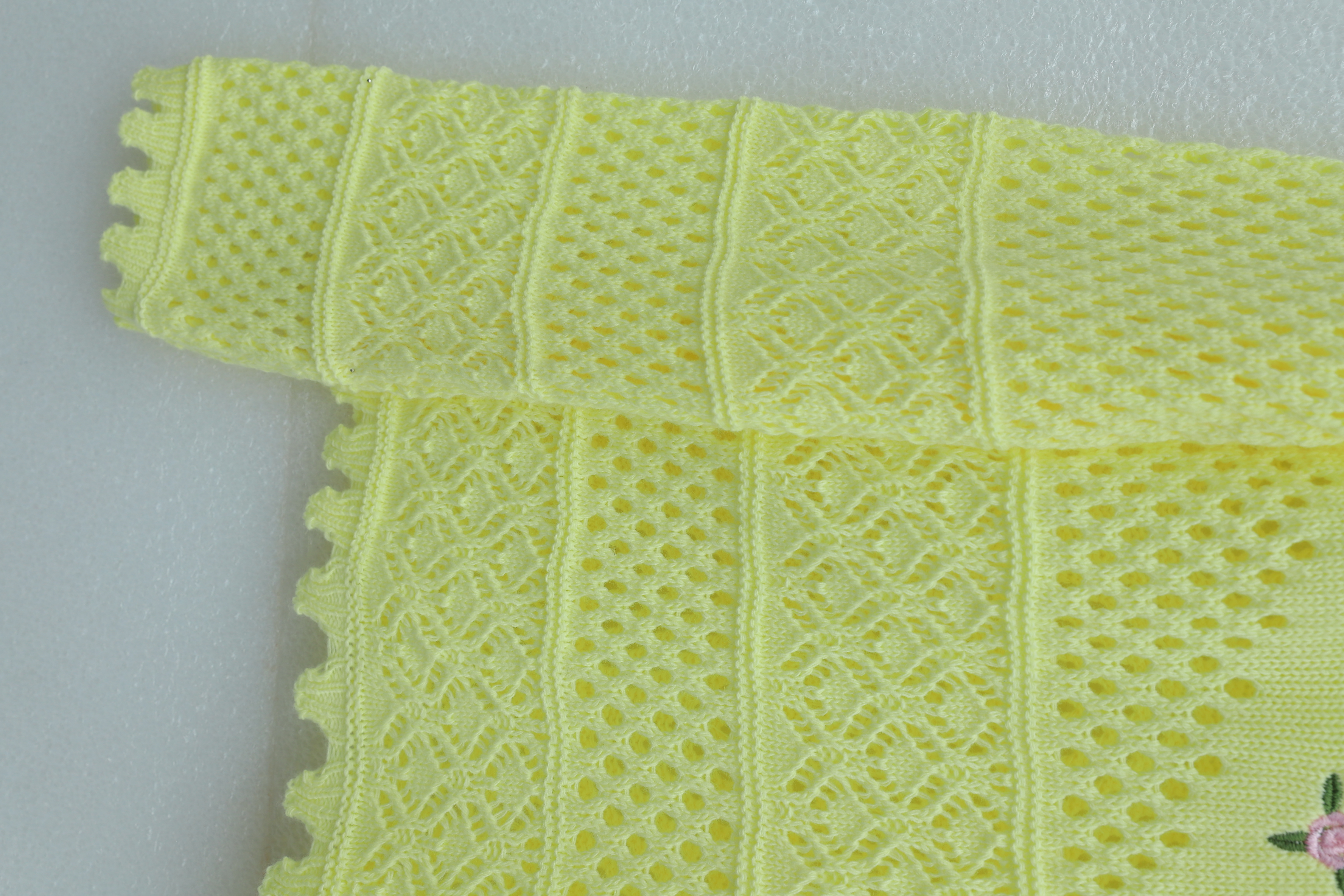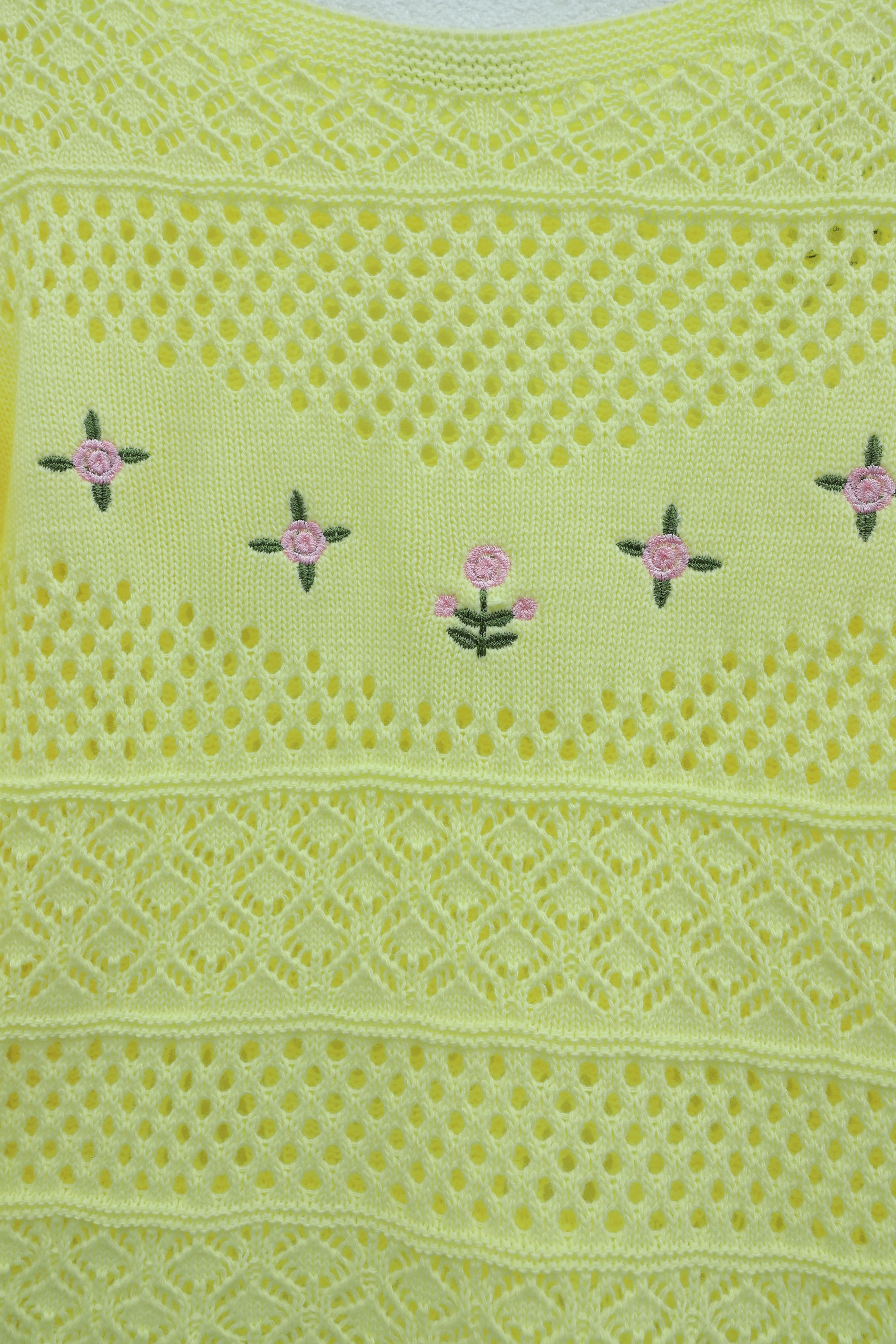 Knitted Sweater with Floral Embroidery and Openwork Pattern -Yellow