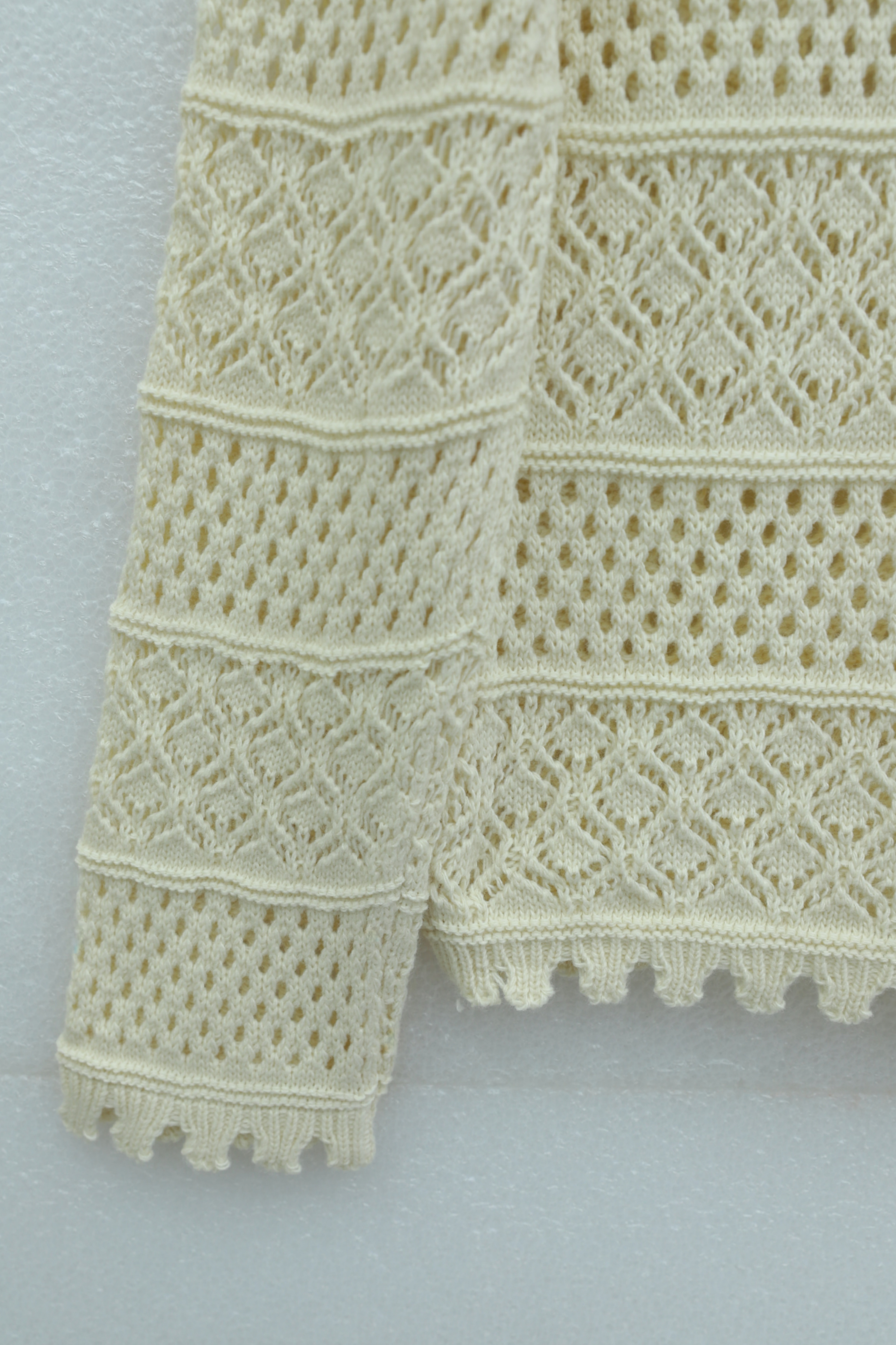Fine Knit Sweater with Openwork Pattern -Ecru