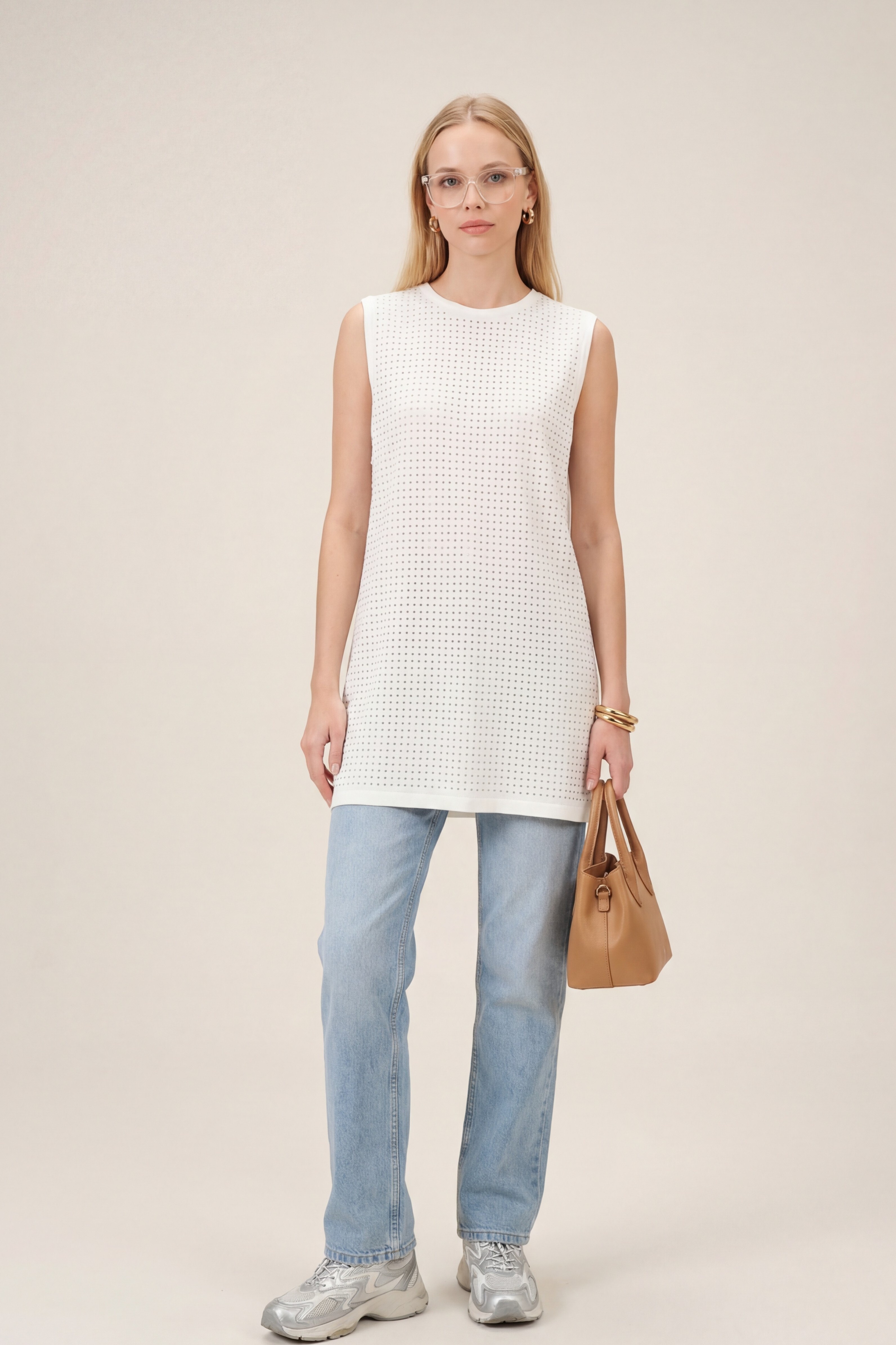Işıltılı ve zarif tasarımıyla öne çıkan Önü Taş Detaylı Sıfır Kol İçlik, sade kombinlere şık bir dokunuş katmak isteyenler için ideal bir seçim! Ön kısmındaki taş detayları ürüne sofistike ve dikkat çekici bir hava kazandırırken, sıfır kol tasarımı katmanlı kombinlerde rahat kullanım imkânı sunar. Yumuşak ve esnek kumaş yapısı sayesinde gün boyu konfor sağlar. Ceket, kimono ve gömleklerin içinde tamamlayıcı parça olarak kullanılabileceği gibi tek başına da şık bir görünüm oluşturur. Vücuda oturan fakat sıkmayan ideal kalıbı ile dengeli ve estetik bir siluet sunar.