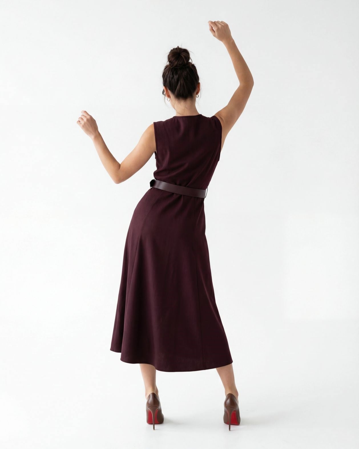 Puantiyeli Sıfır Kol Elbise - Kahve | D2946 Topshow