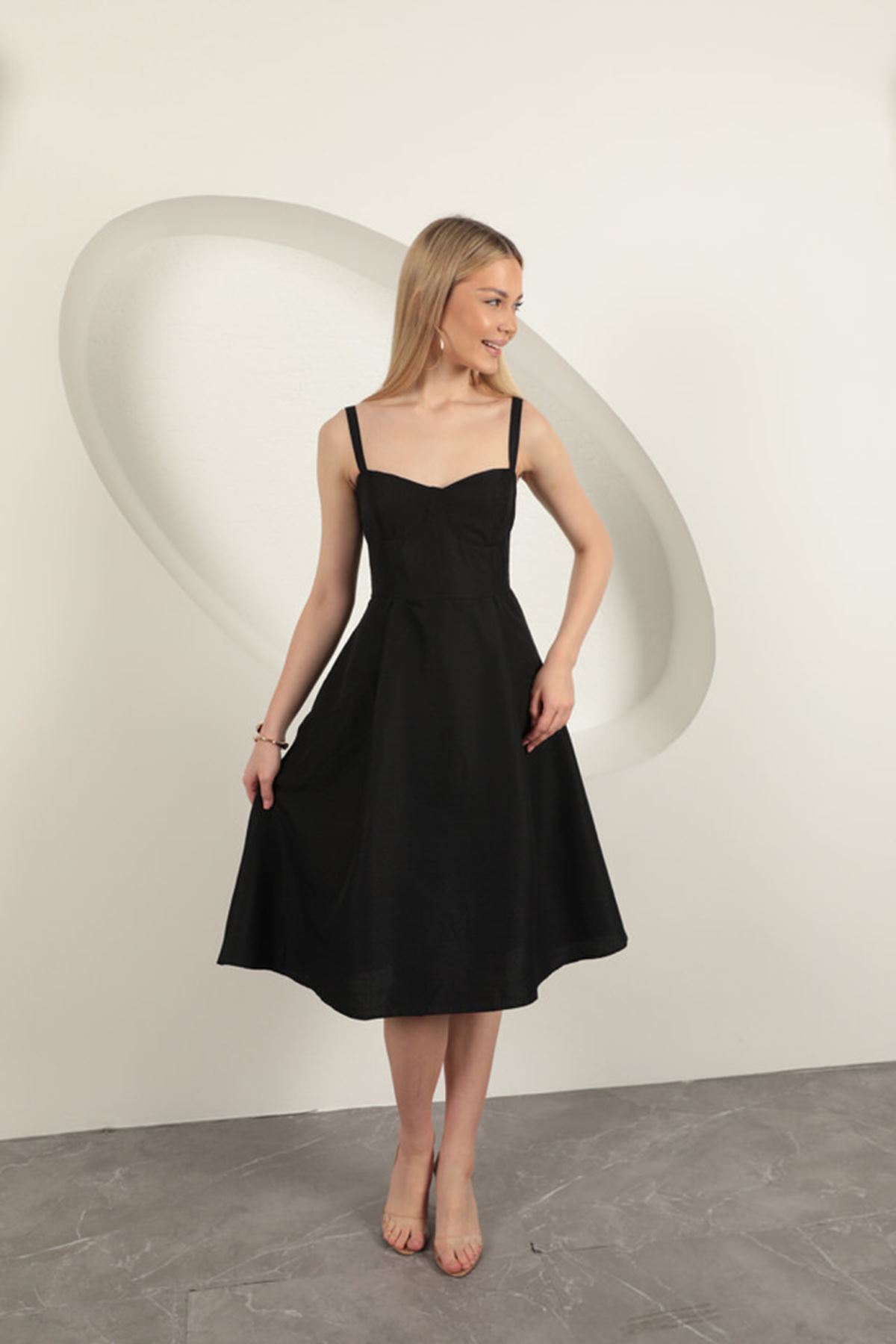 Kadın Omuzlardan Açık Boyundan çapraz Bağlama Detaylı Süprem Elbise , 24460