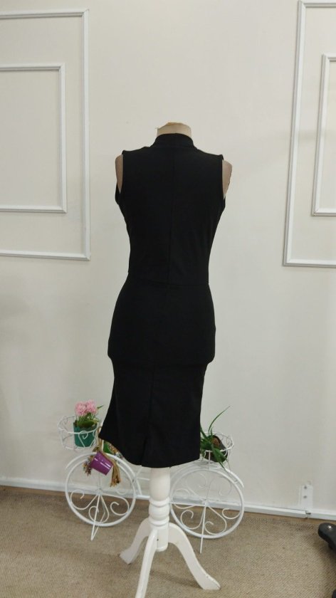 Kadın Kısa Kollu Asimetrik Yaka Detaylı Midi Janjan Krep Elbise, 33839