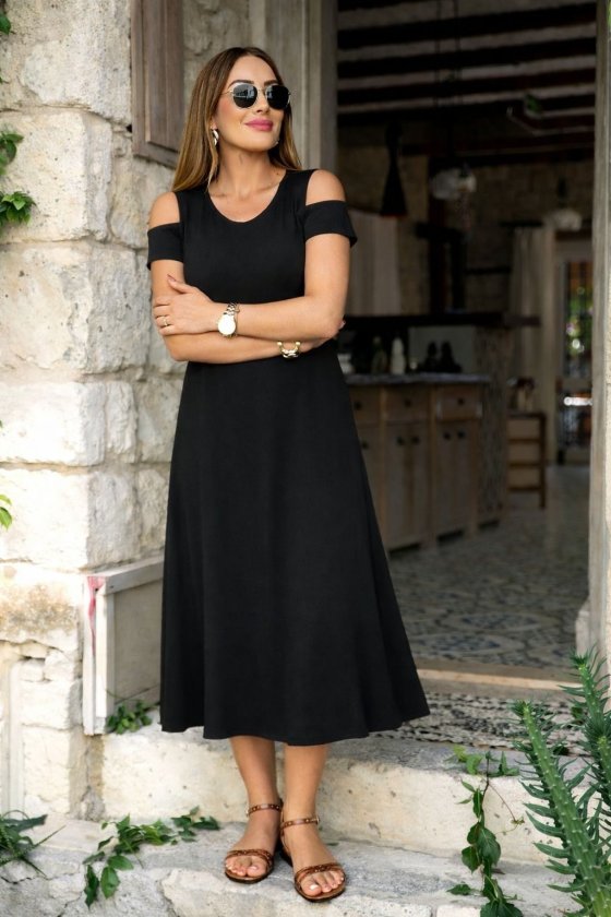 Kadın Askılı Omuzlardan Açık Midi Viskon Elbise, 33861