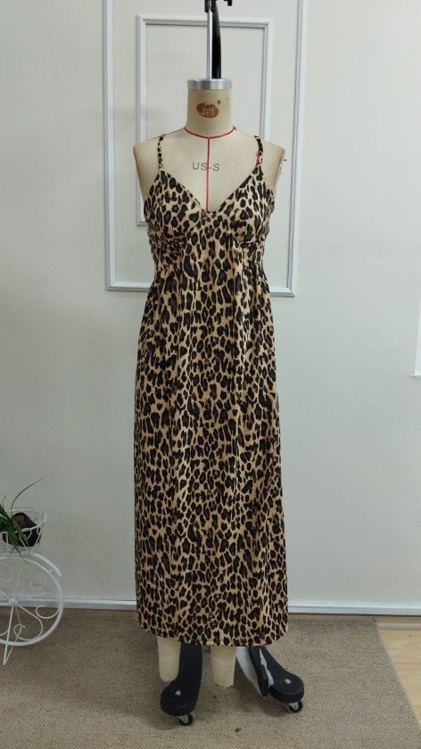 Kadın Ip Askılı V Yakalı Uzun Desenli Süprem Elbise, 33539