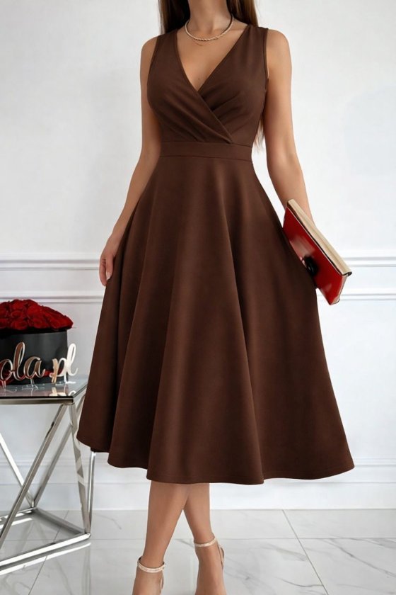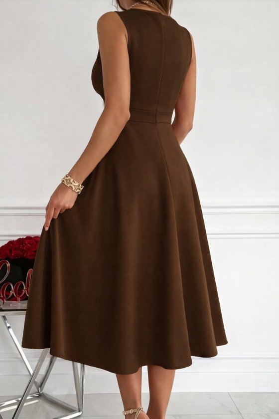 Puantiyeli Sıfır Kol Elbise - Kahve | D2946 Topshow