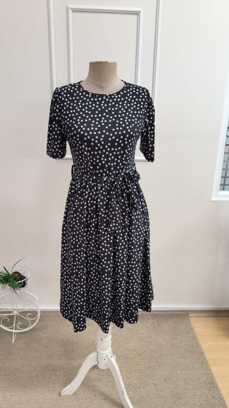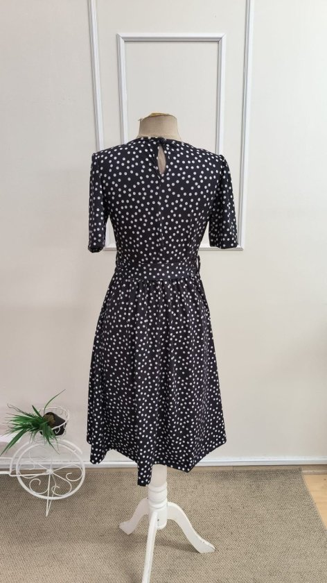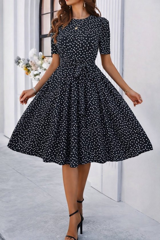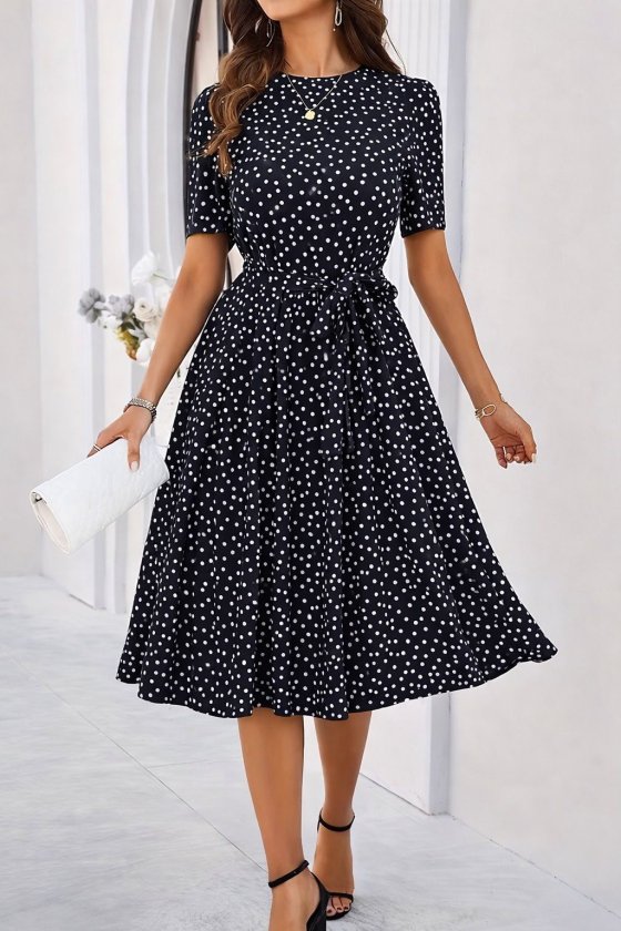 Puantiye Baskılı Elbise - Siyah Krem | D3024 Topshow