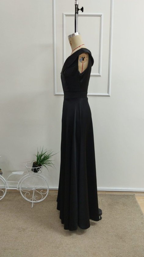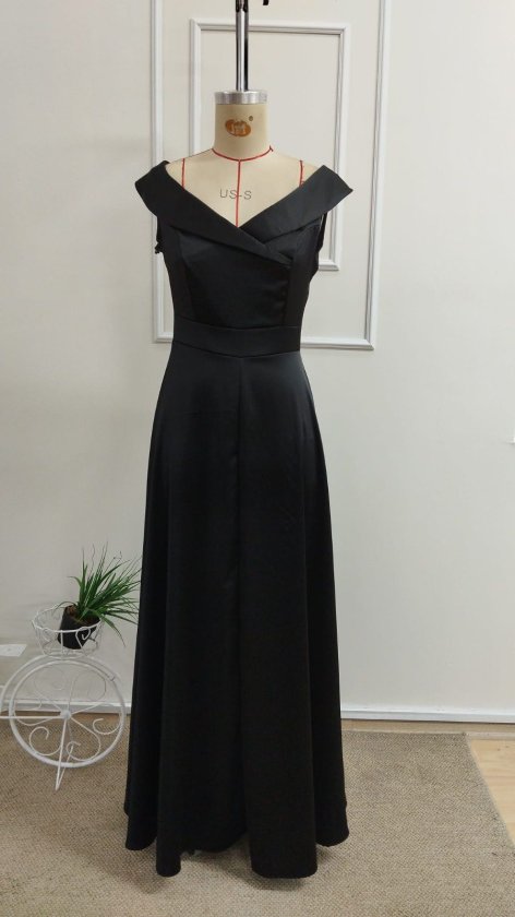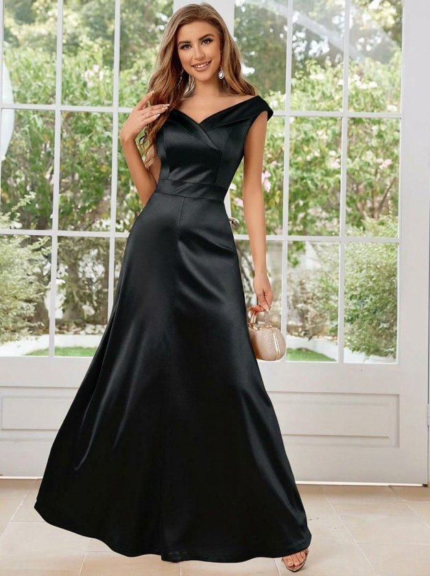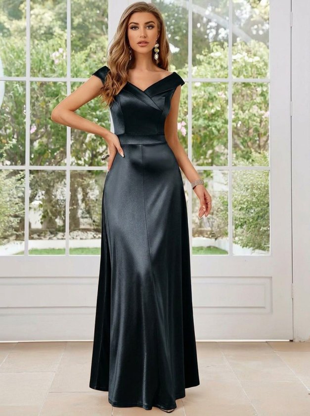 Kadın Kısa Kollu Kruvaze Yakalı Uzun Saten Elbise