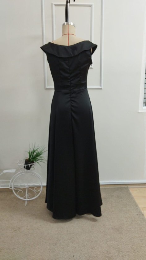 Dantel Detaylı Saten Elbise - Siyah | D3022 Topshow