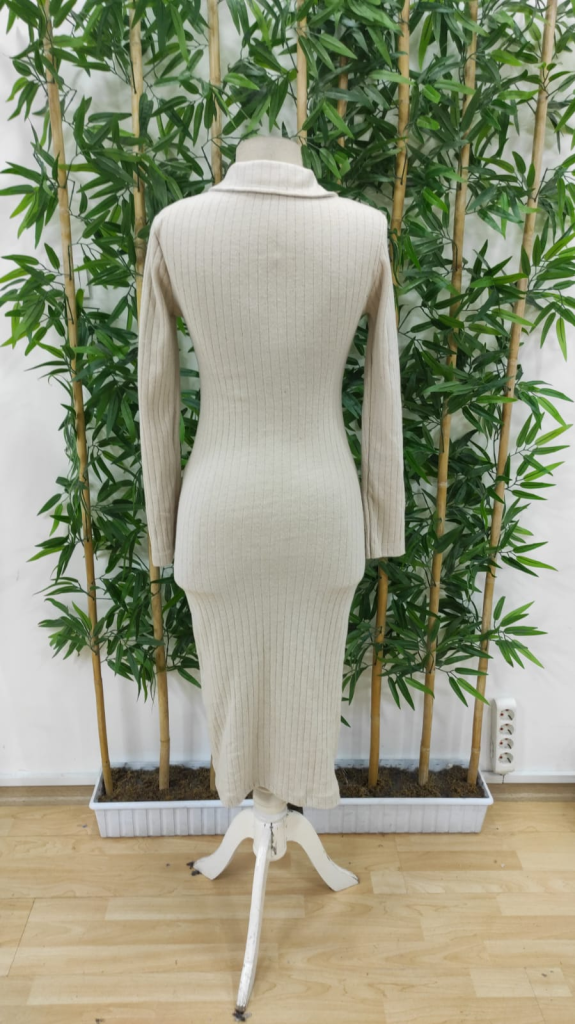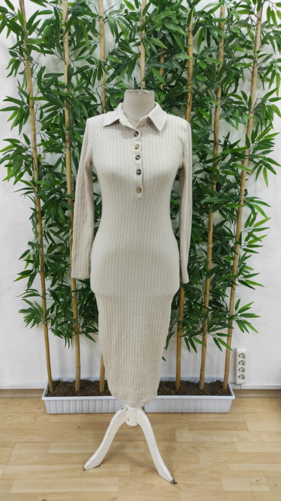 Kadın Uzun Kollu Yakalı Düğmeli şardonlu Kaşkorse Elbise, 28929
