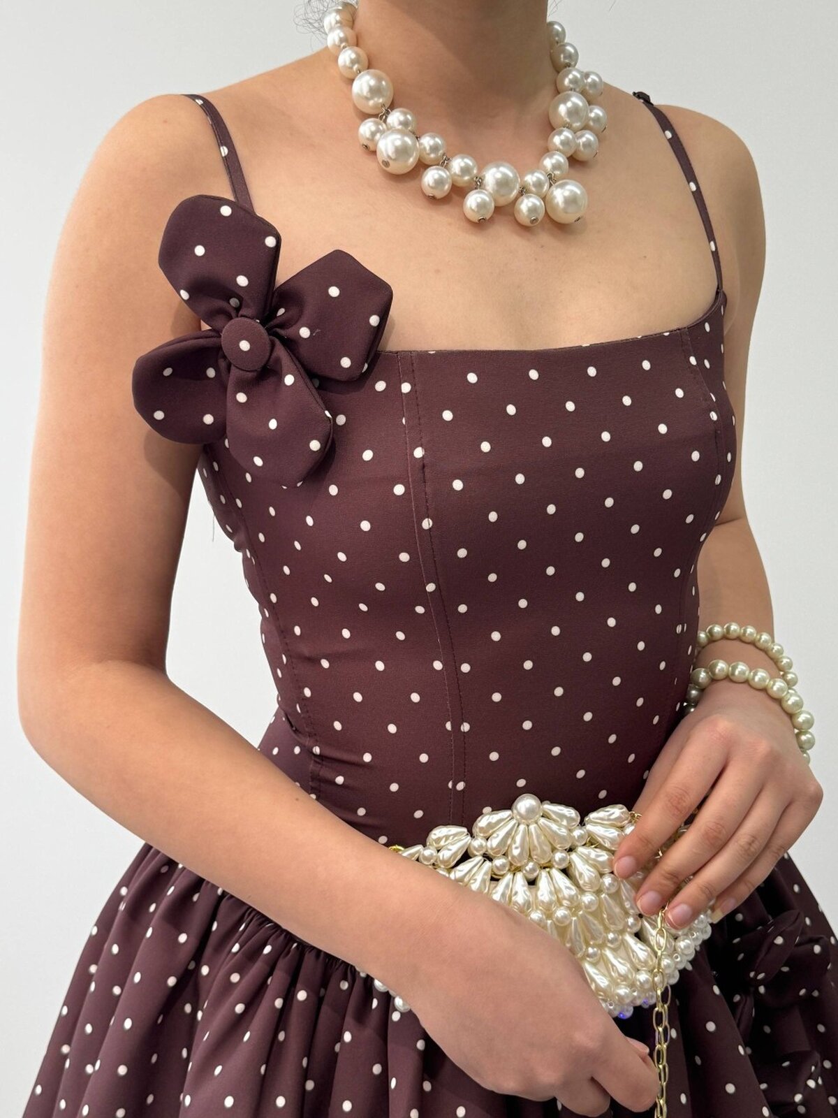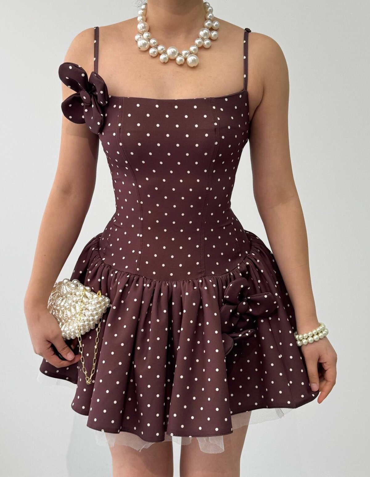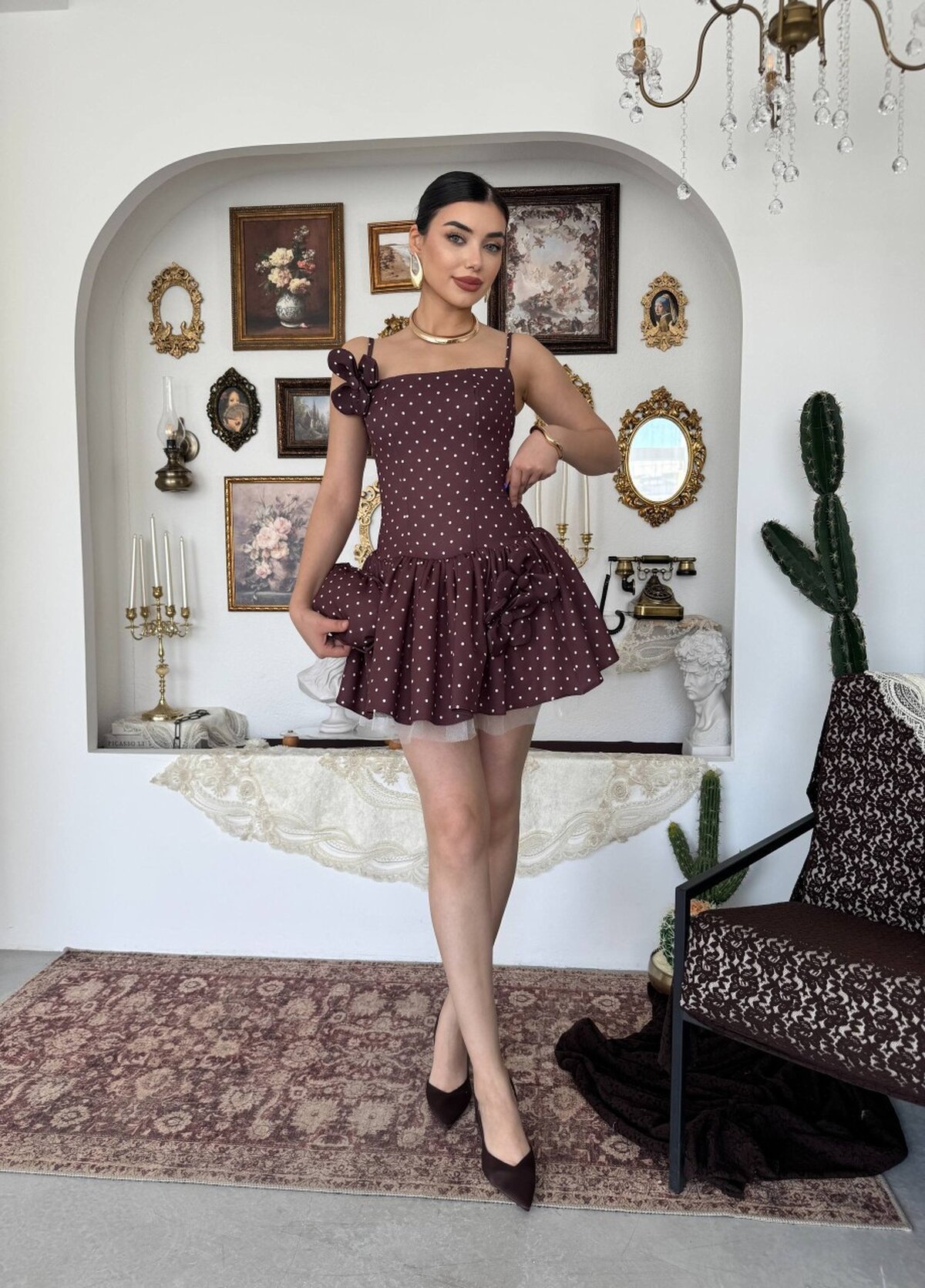 Keraj Çiçek Detaylı Elbise ETK-00906-kahve