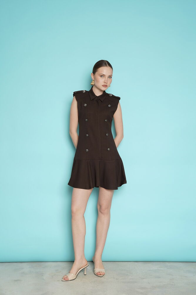 Omuzu Apoletli Sıfır Kol Mini Toptan Elbise - Kahve | D2974 - Topshow